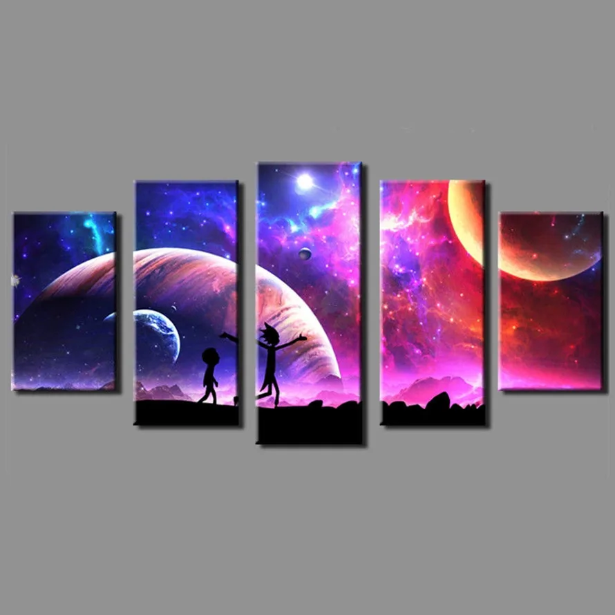 5 панелей аниме красивое звездное небо картина Рик Морти постер дом...