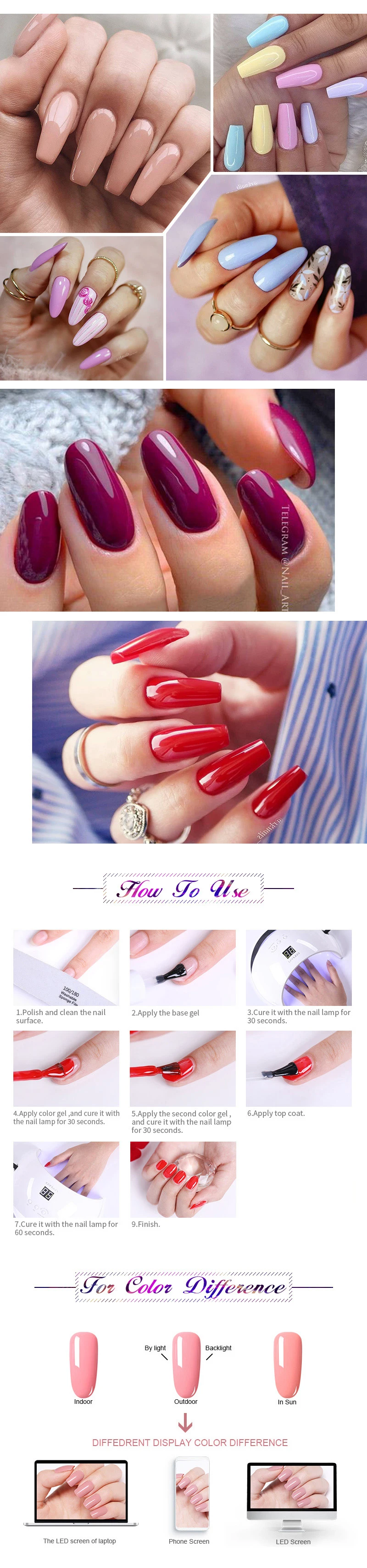 Спецификация:Бренд: KOSKOE Тип товара: гель для ногтейСостав: УФ-Гель-лакОбъем: 8 млКоличество: 6 шт./компл.Тип: Гель-лакОтмачивание: ДаСушка: УФ светодиодный ная лампаПреимущество: простота в обращенииЭффект: цвет ногтей, блеск Посылка:6 шт./компл. 8 мл KOSKOE Гель-лак для ногтей Шаг за шагом:1. Очистите ногти, затем поверхность ногтя в процессе обычный ноготь дизайна.2. Полностью встряхните Гель-лак, это поможет сбалансировать Цвет гель-лака. (ВАЖНО)3. Сначала нанесите базовый гель, чтобы увеличить стойкость гель-лака, засушите с помощью УФ-лампы или светодиодный Ной лампы. (Необходимо)4. Нанесите первый слой цветного гель-лака. Выдержка: 30 секунд светодиодный Ной лампе или 2 минуты в УФ-лампе.5. Нанесите второй слой цветного гель-лака. Сушить: 30 секунд светодиодный Ной лампе или 2 минуты в УФ-лампе.6. Покрытие без протирания верхнего слоя. Выдержка: 30 секунд светодиодный Ной лампе или 2 минуты в УФ-лампе. Как снять УФ-гель для ногтей:• Замочите ногти в стеклянной миске, наполненной небольшим количеством ацетона, илиОберните каждый ноготь в ватный диск, смоченный ацетоном, примерно на 5-10Минут.• Изделие начнет становиться мягким, и вы можете аккуратно отшлифовать его или соскользнуть с помощью небольшой деревянной палочки.