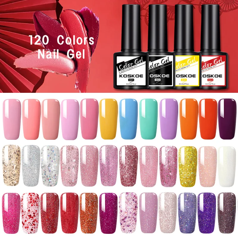 Гель-лак для ногтей KOSKOE, 6 шт., цвет набор гель-лаков для ногтей, 120, s, с блестками, удаляемый замачиванием, УФ-светодиод, набор для лаков, набор для ногтевого дизайна