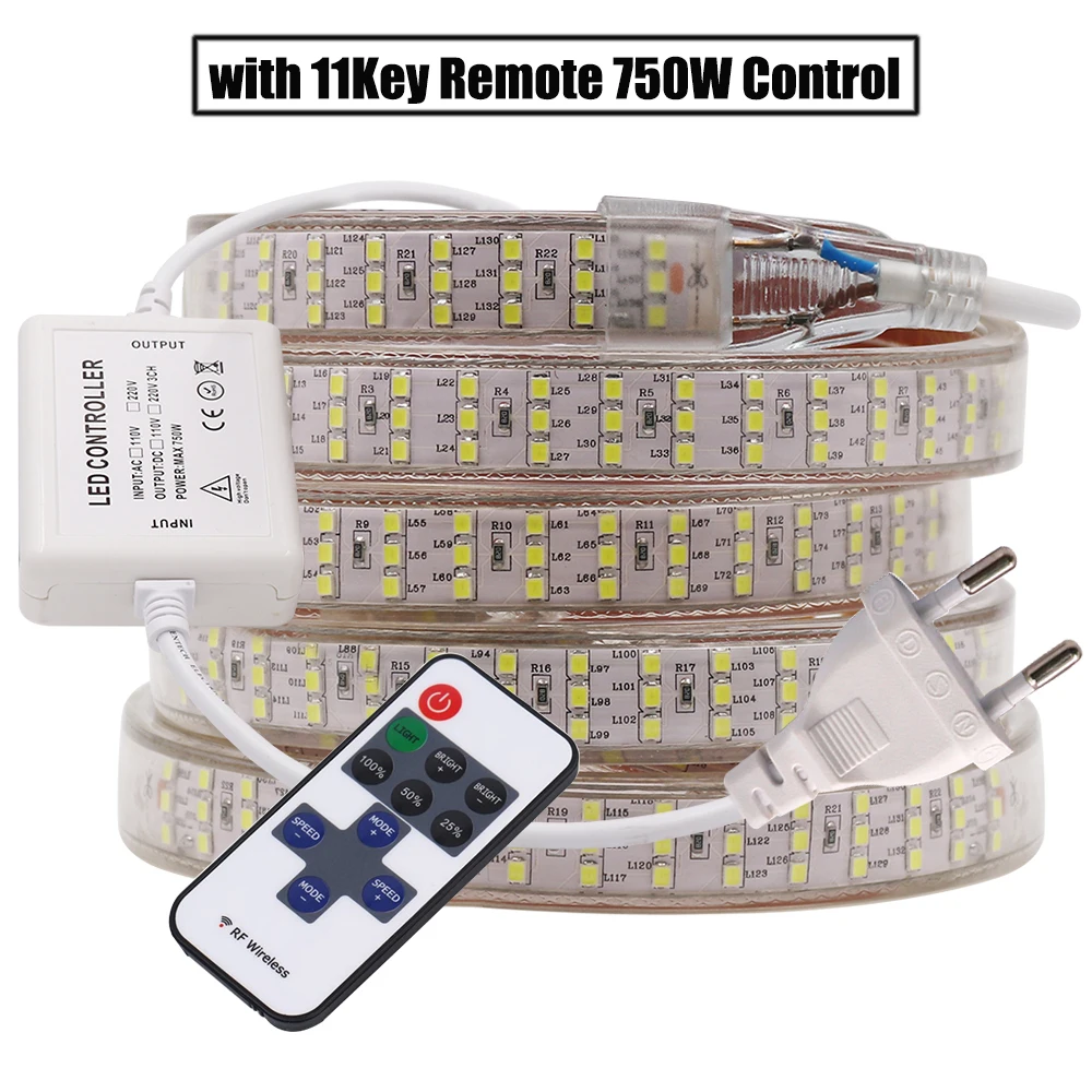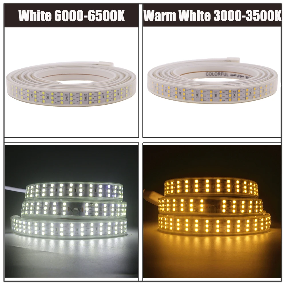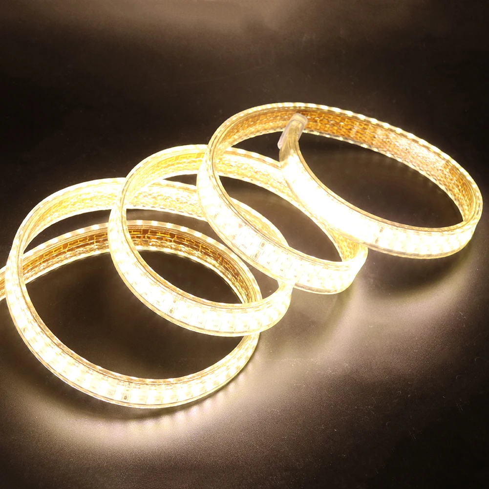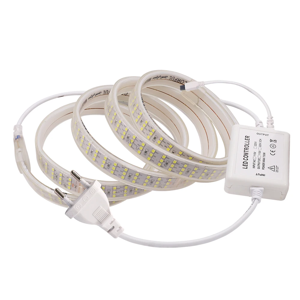 276 светодиодный трехрядный светодиодный светильник 220 В SMD2835, гибкий светодиодный ленточный шнур, водонепроницаемый Светодиодный светильник с диммером