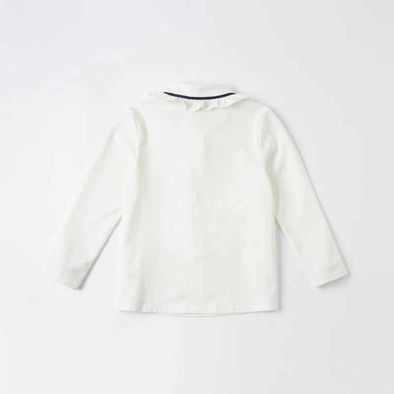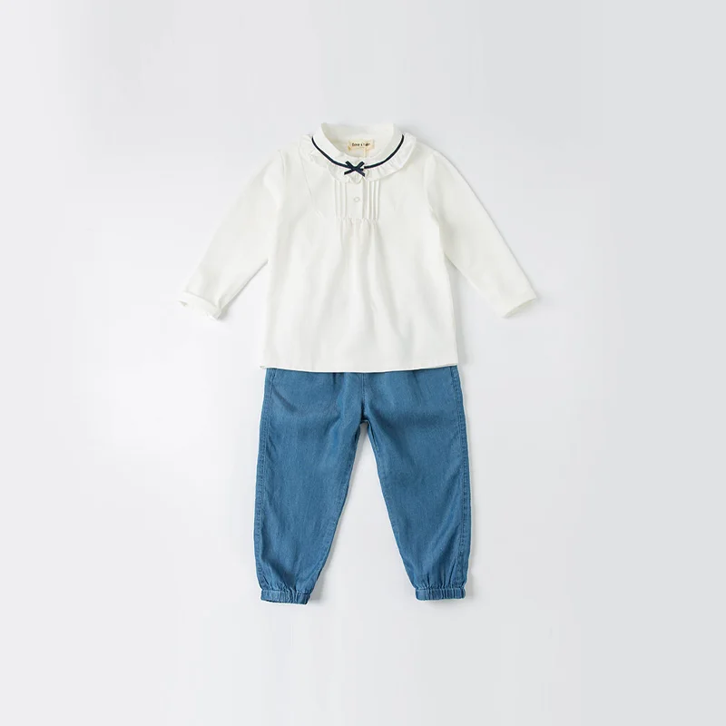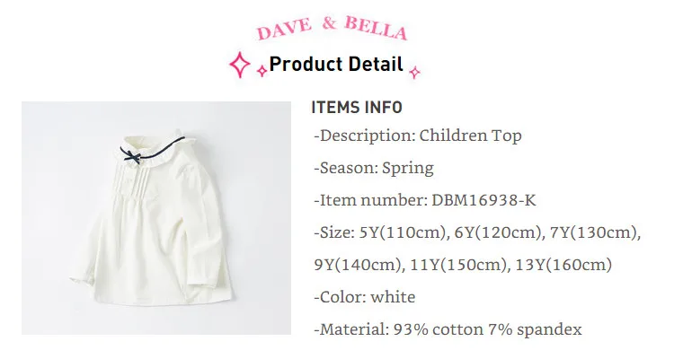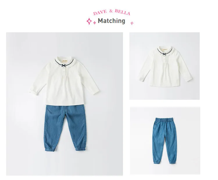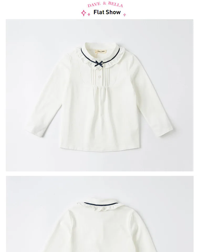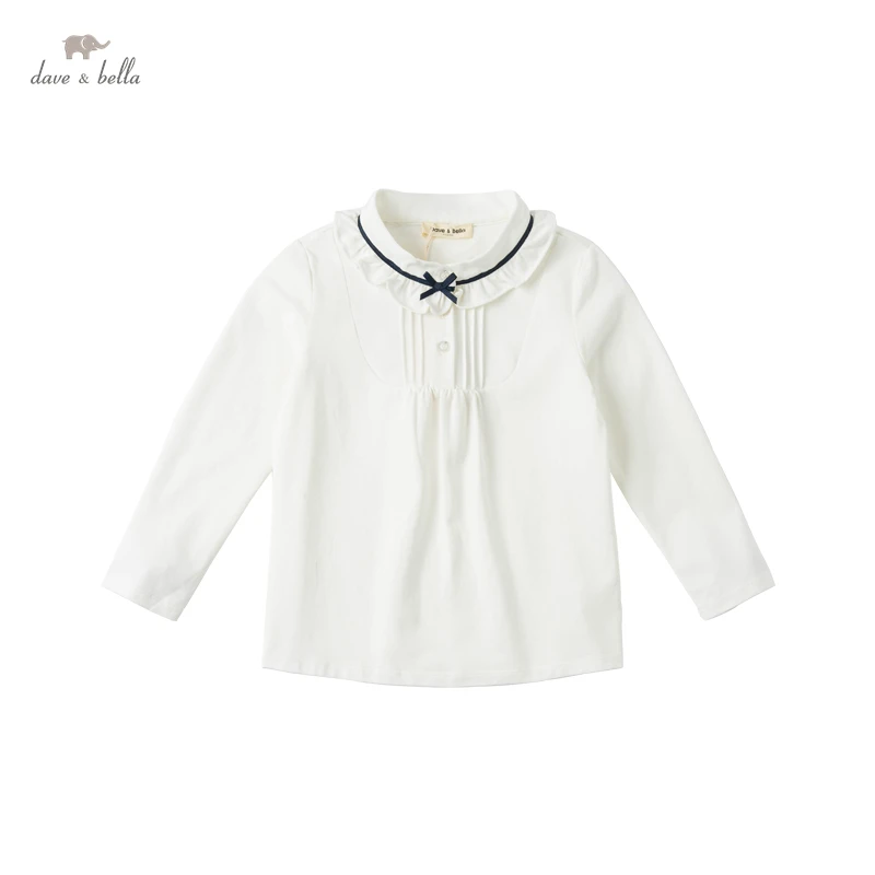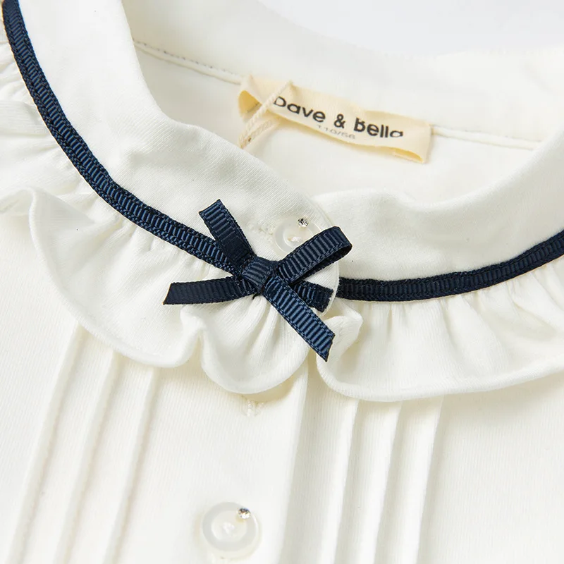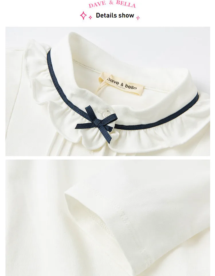 DBM16938-K г., dave bella, весенняя, От 5 до 13 лет, детская, для девочек, модная, с бантом, однотонная, с рюшами, футболки для девочек, высокое качество, модные футболки