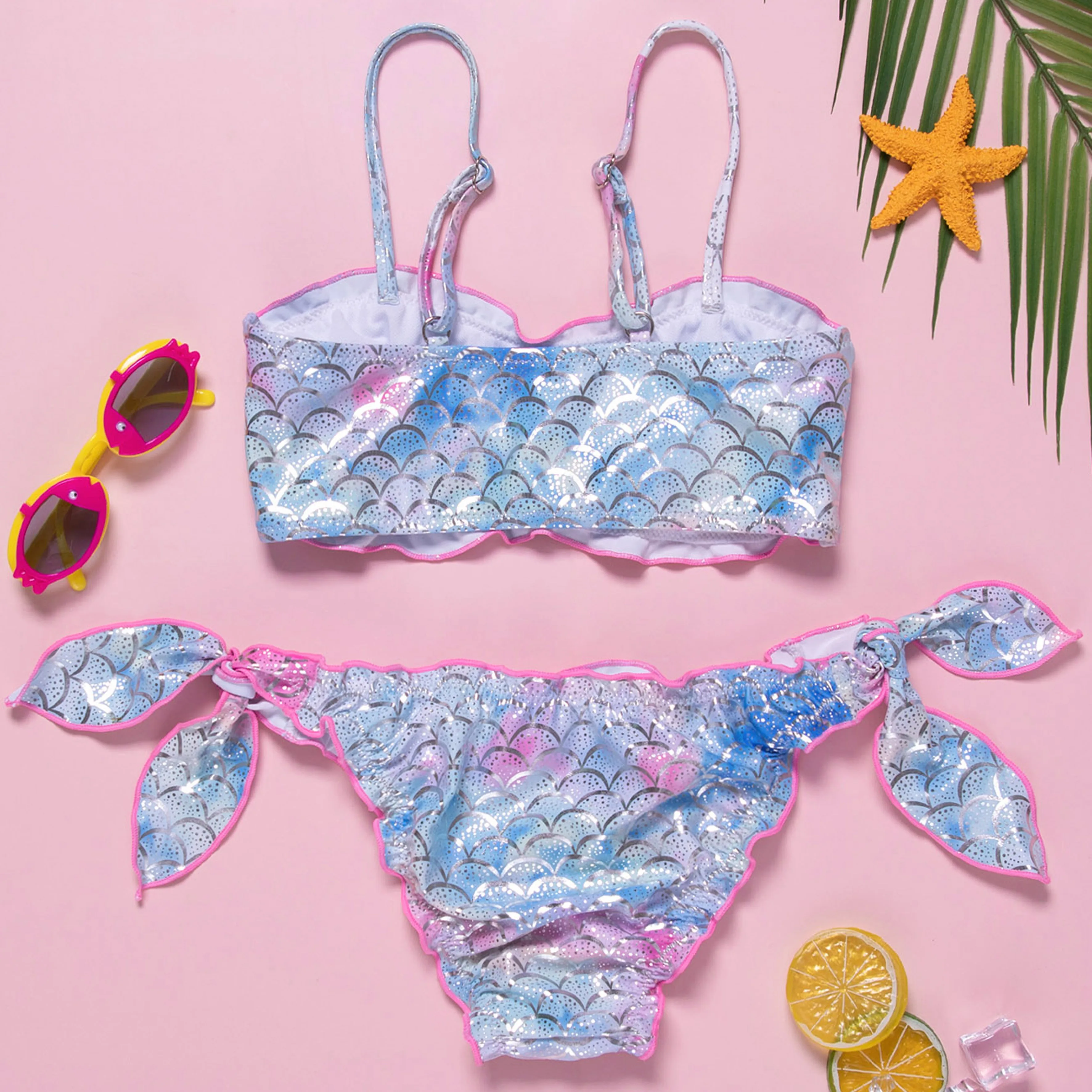 Женский раздельный купальник, милый раздельный купальник из двух предметов, Яркие топы на бретелях с узором в виде весов и бандаж, 0-11 лет