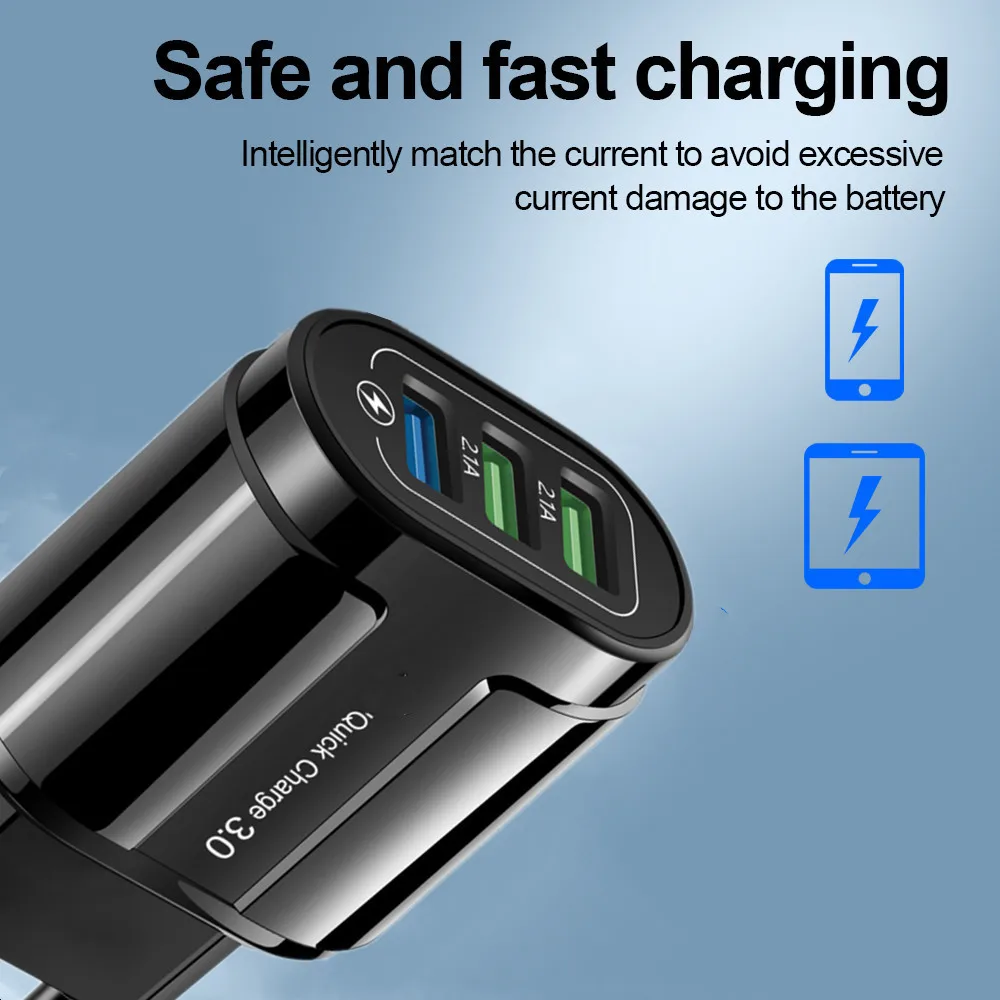 Зарядное устройство с 3 USB-портами, быстрая зарядка 3,0 для iphone...