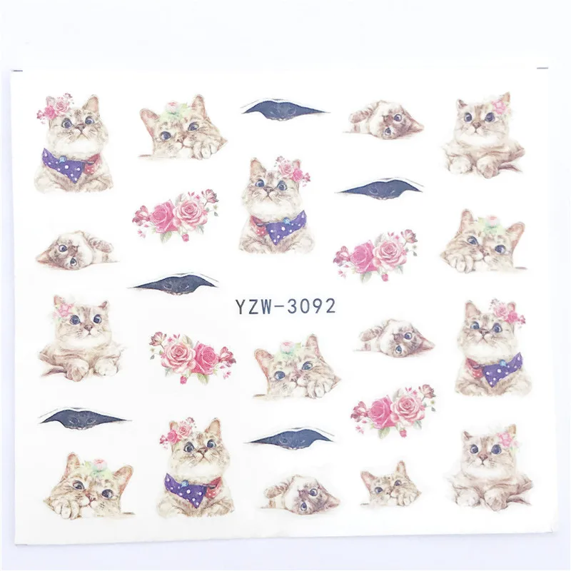 1 шт. летние цветы серии наклейки для ногтей с милым рисунком кота ...