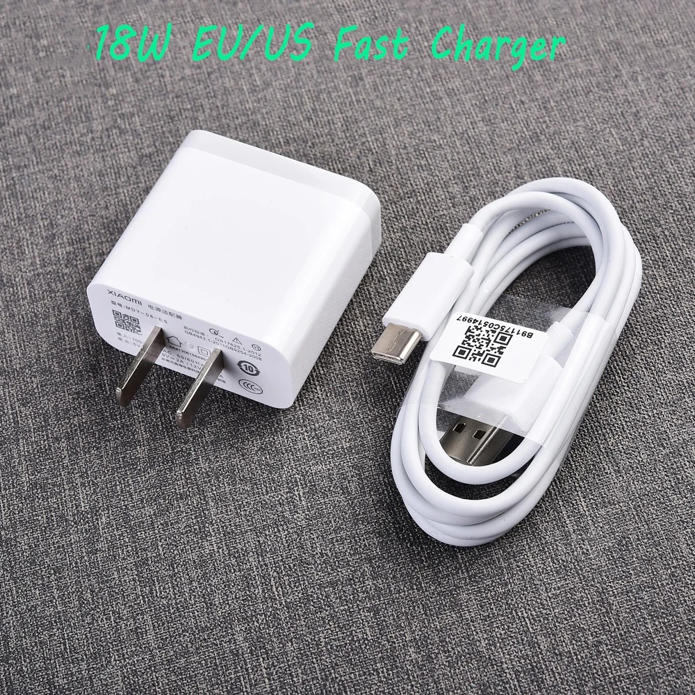 Зарядное устройство Xiaomi Mi 6 8 Redmi Note 8 8T Pro QC3.0 Quick 12V 1.5A 9V 2A EU/US Wall Fast Charge Adapter Type C кабель для Mi A3 CC9