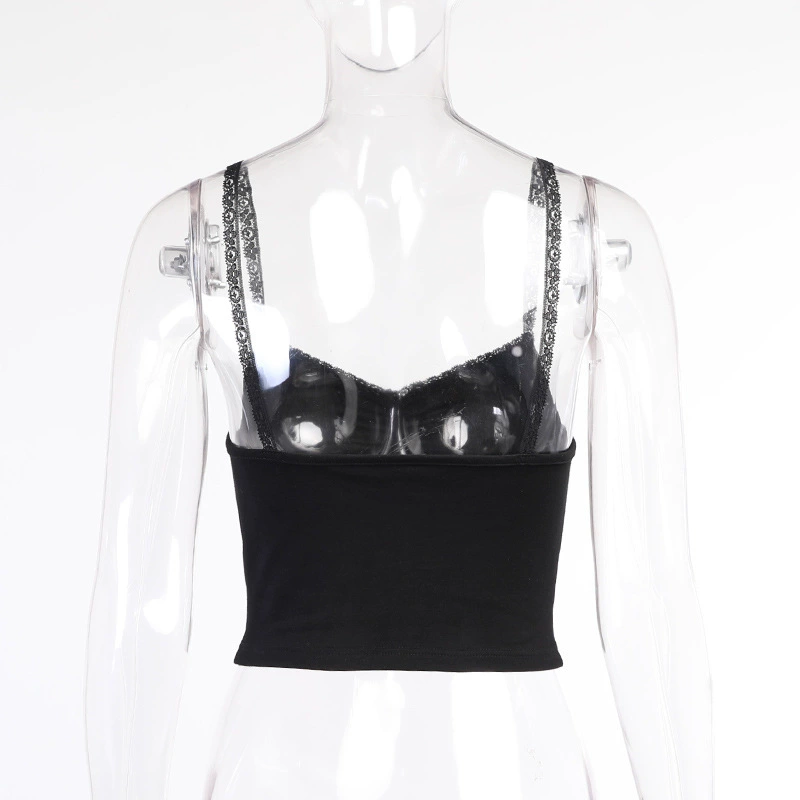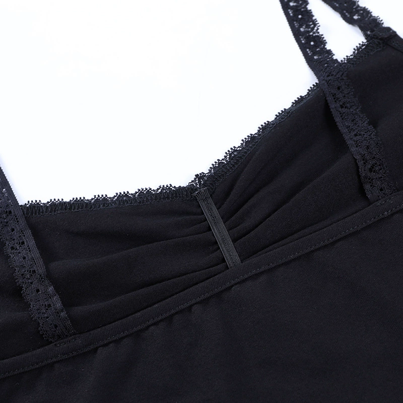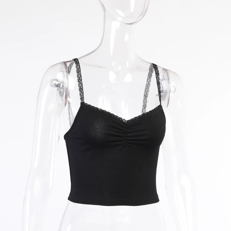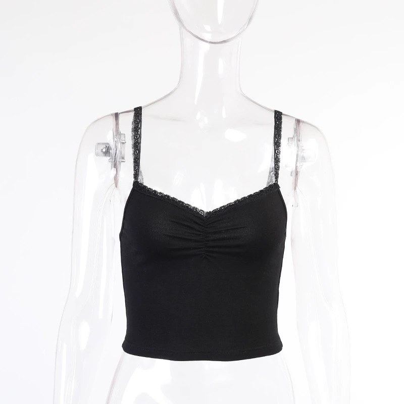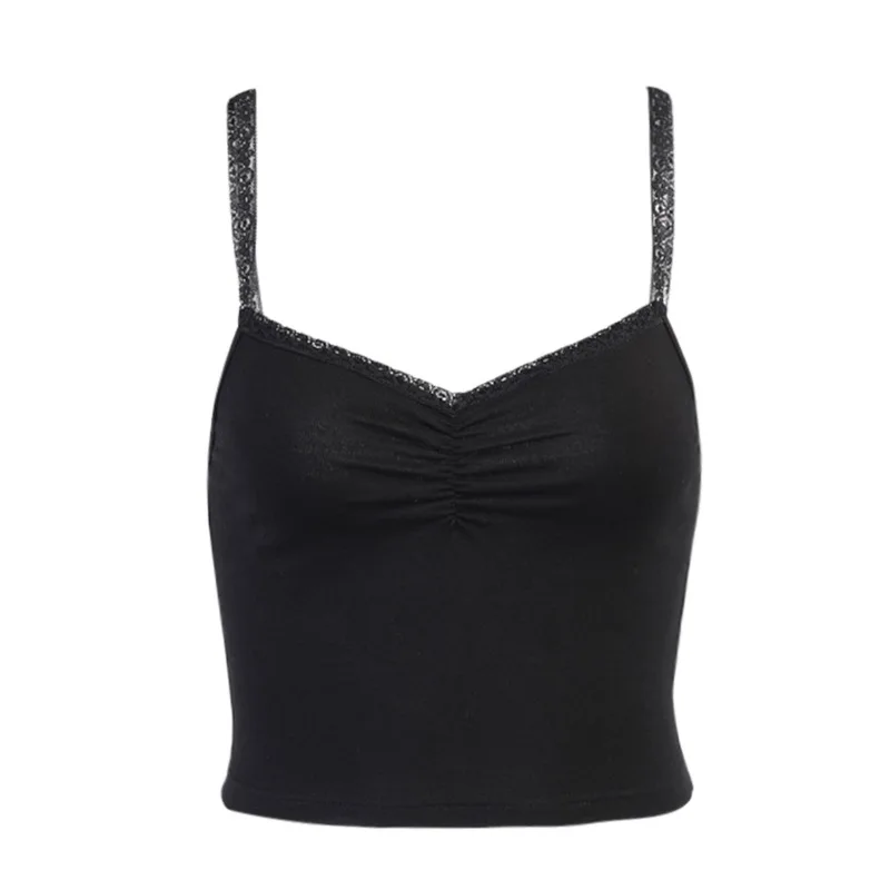 Женский топ без рукавов Goth, черный облегающий уличный топ на бретелях-спагетти с оборками, летний модный элегантный кроп-топ