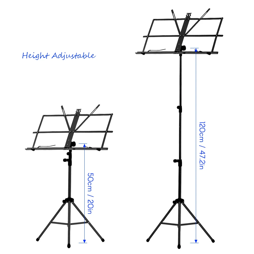 Характеристики типа А:Складная подставка и складная листовая музыка для оркестра, музыкальных плееров и музыкантов.50 см до 140 см Регулируемая высота и 180 градусов горизонтальный поворотный.Нескользящие резиновые ножки для дополнительной стабильности.Поставляется с водонепроницаемой нейлоновой сумкой для переноски.Материал: подставка из алюминиевого сплава и пластиковая панельЦвет: черныйРазмер панели: 30*36 см/12*14 дюймовВысота стойки: прибл. 50 см/20 дюймов до 140 см/55 дюймовТовар Размеры (в сложенном виде): 55*15*10 см/21,6*5,9 * 3.9in (L * W * H)Вес изделия: 900 г/31,7 унцийПримечание:Музыкальная папка и листовая музыка не включены.Характеристики типа B:Встроенная конструкция соединения между доской и опорным стержнем обеспечивает лучшую стабильность.С регулируемыми ручками, можно свободно регулировать угол платы и длину опорного стержня.1,5 мм утолщенная металлическая трубка стены, стол и прочный.Использование треугольного кронштейна с хорошей стабильностью, не легко встряхнуть.Съемная и складная Музыкальная подставка, вес и легкий светильник для переноски.Материал: металлВысота: 60-130 смРазмер панели: 41,5*28*4,5 см/16,34*11,02*1,77 дюймаВес стойки: 1245 г/43,92 унцийПосылка: 50*30*5 см/19,69*11,81*1,97 дюймаВес посылка: 1265 г/44,62 унцийХарактеристики типа C:Полностью регулируемая высота и угол 180 градусов.Нескользящие резиновые ножки для дополнительной стабильности.Регулируемая высота от прибл. От 50 см до 120 см.Складной и легкий, удобный для переноски и хранения.Поставляется с водонепроницаемой нейлоновой сумкой для переноски.Материал: железоРазмер панели: 49*23 см/19,3*9 дюймовВысота стойки: прибл. От 50 см до 120 смРазмер изделия (в сложенном виде): 55*8*6 см/21,6*3,1 * 2.4in (Д * Ш * В)Вес изделия: 806 г/28,4 унцийХарактеристики типа D:Складная и портативная: Музыкальная подставка и книжная тарелка складываются, что делает их очень легкими и удобными в переноске.Регулируемый и гибкий: пюпитр с 3-х секционная телескопическая трубка и Гибкая регулировка высоты от 52-121 см/20,5-47.6in, которые могут удовлетворить различные привычки игры человека (сидя или стоя).Сильная и стабильная: принимает более прочные трубки, дизайн 3 ног и противоскользящие резиновые ножки, музыкальная подставка имеет большую грузоподъемность и более стабильна в использовании.Практичный и внимательный: большая книжная тарелка 45*25 см подходит для музыкального листа разного размера, а нижняя часть книжной плиты позволяет разместить ручку, барабанные палочки и другие мелкие предметы.Материал: металл + пластикВысота: 52-121 см/20,5-47.6inРазмер книжной плиты: 45*25 см/17,7*9,8 дюймаВес изделия: 1270 г/2,8 фунтов