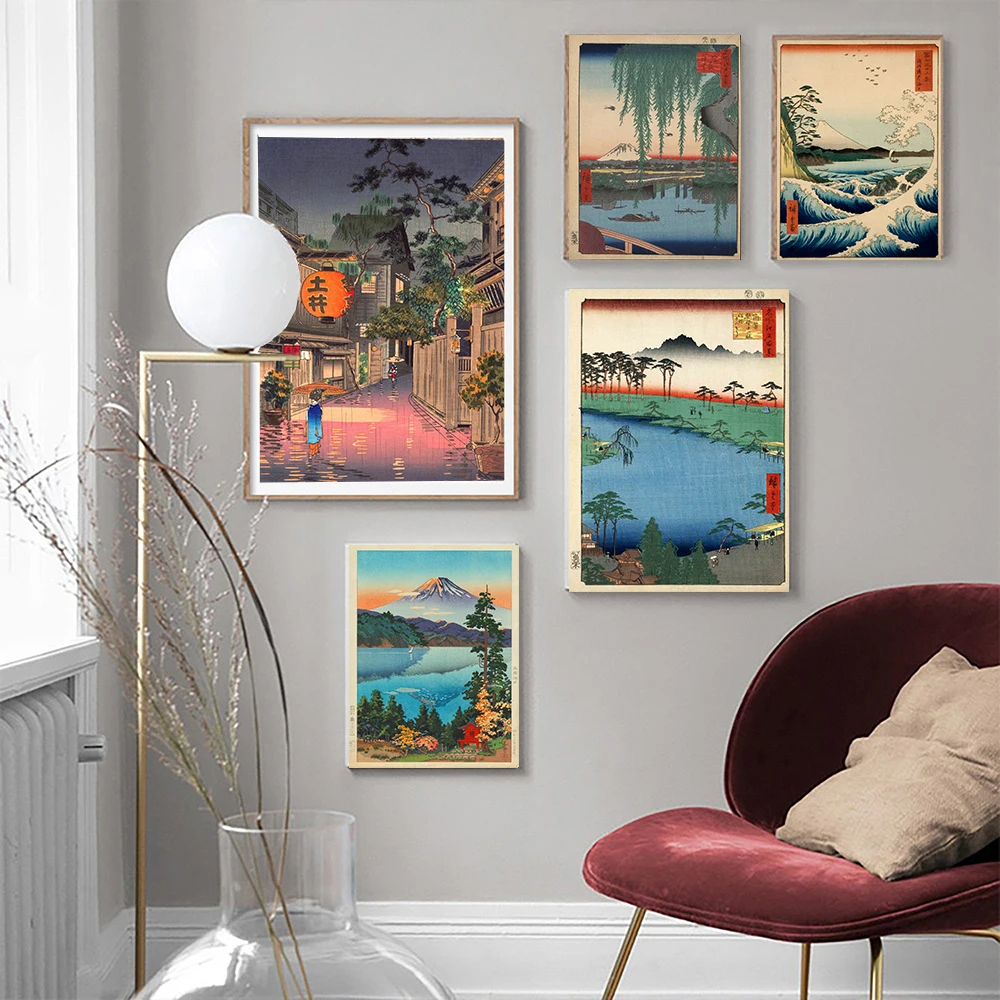 Винтажный Японский пейзаж, плакат с принтом волны канагава, художественная живопись на холсте, настенные картины для гостиной, Восточный домашний декор