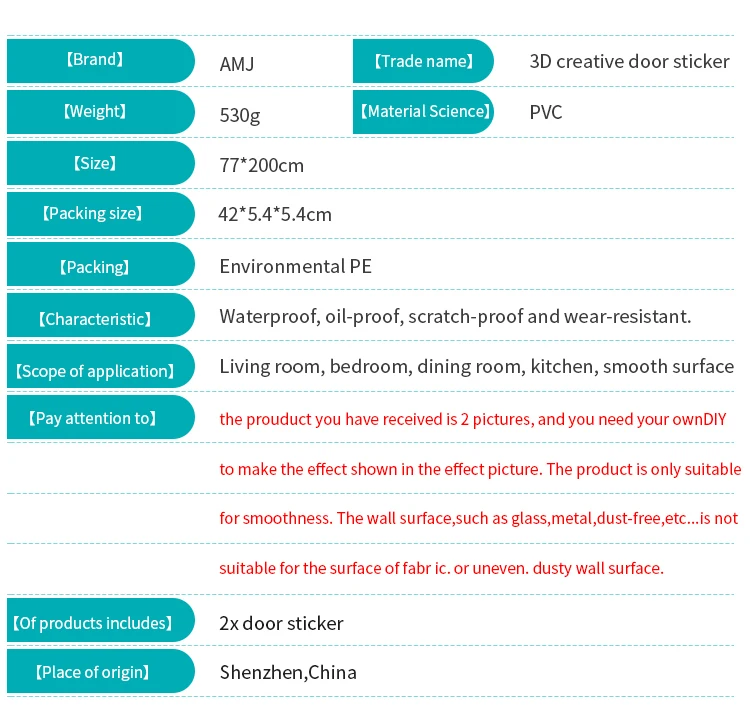 Примечание: мы можем предоставить специальный размер наклейки двери вы хотите, пожалуйста, свяжитесь с нами.