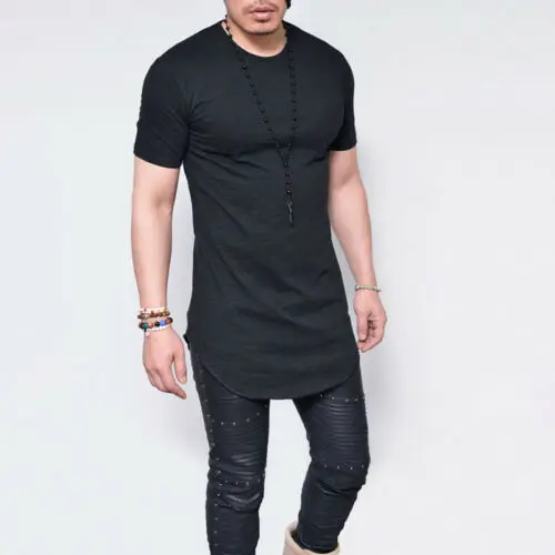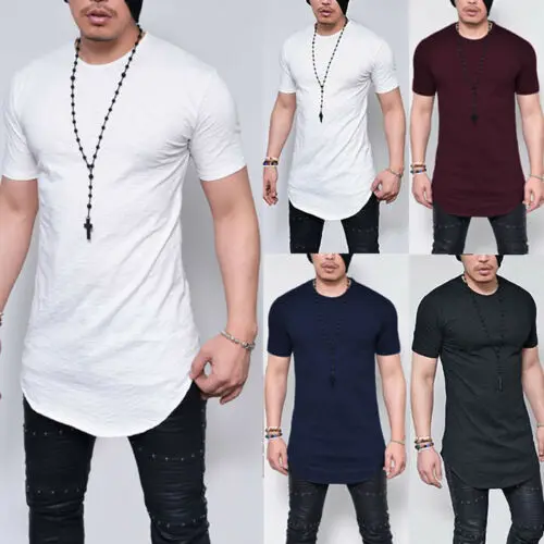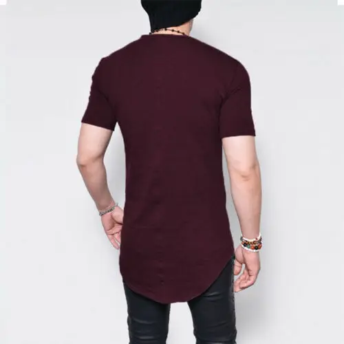 Мужская футболка с коротким рукавом, однотонная приталенная туника, Повседневная Длинная блуза