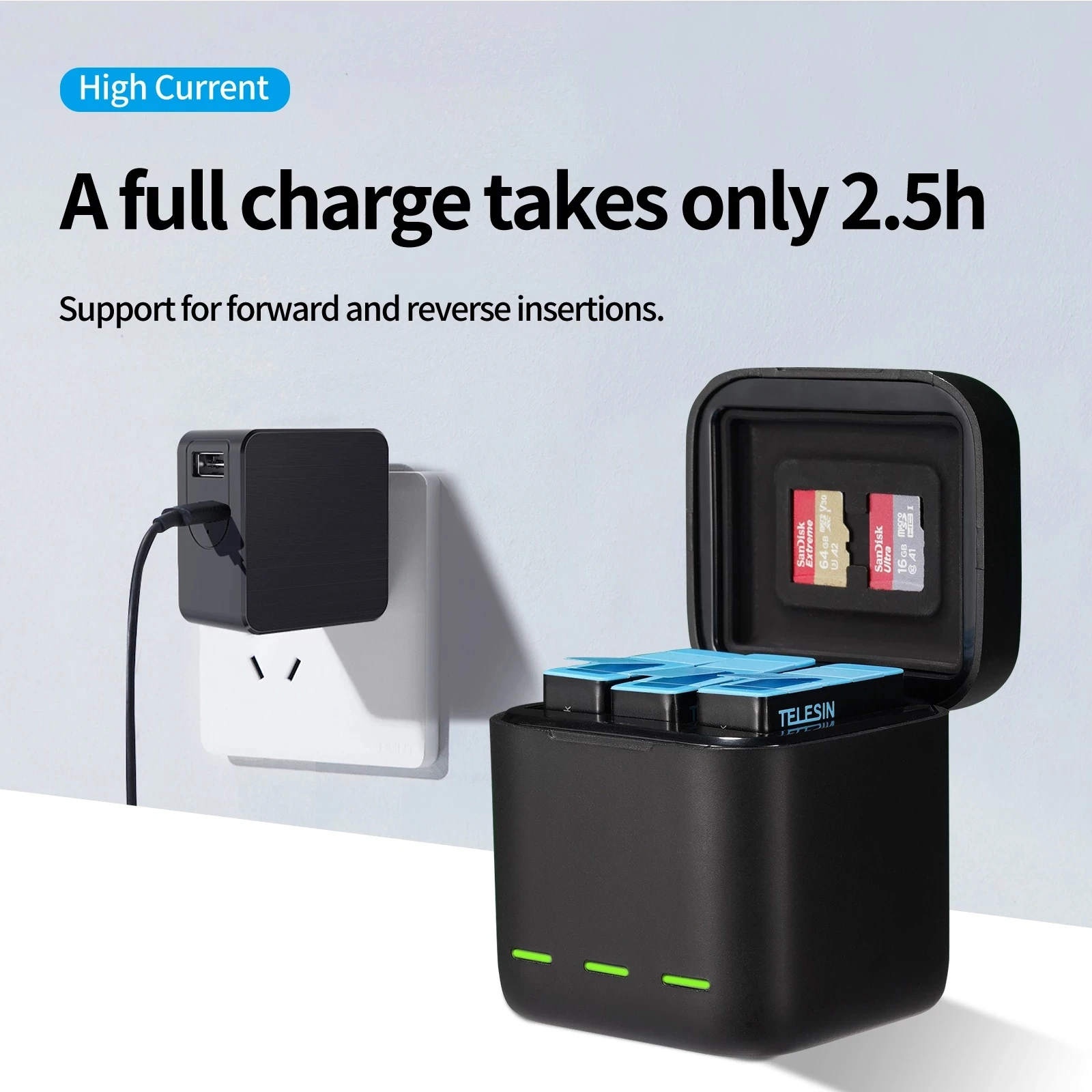 1. Большая емкость 1750 мАч, терка, чем Оригинальная батарея2. До 112 мин времени съемки на одной батарее (время использования отличается в разных режимах).3.100% идеально подходит для GoPro Hero 9 10 черного цвета, без всплывающих окон.4. Зарядное устройство от квадратного до круглого, более удобное на ощупь, как детская кожа.5. Девять защиты, использование с уверенностью, батарея и зарядное устройство безопасны.6. Три батареи во время зарядки и хранения, вмещает до двух tf-карт и трех батарей.7.2.4 большого тока, Полная зарядка занимает всего лишь 2,5 h.8. Силиконовый слот для карт, сохраняя при этом лучшую защиту.9. Магнитное открытие и закрытие, покрытие использует магнитное, простое, надежное управление.10. Противоскользящий силиконовый коврик, используйте в нижней части, чтобы избежать падения, больше безопасности.11. Интерфейс Type-c, поддержка передних и обратных вставок, не требуется адаптация кабелей.12. Четко отображенный, уточняющий состояние батареи, постоянно включается зеленый светильник, близкий к полноте желтый светильник остается на синем светильник дышит, Зарядка красный светильник остается на синем светильник дышит, В режиме ожидания всегда включен синий светильник.13. Легко помещается в рюкзак, не занимает много места.