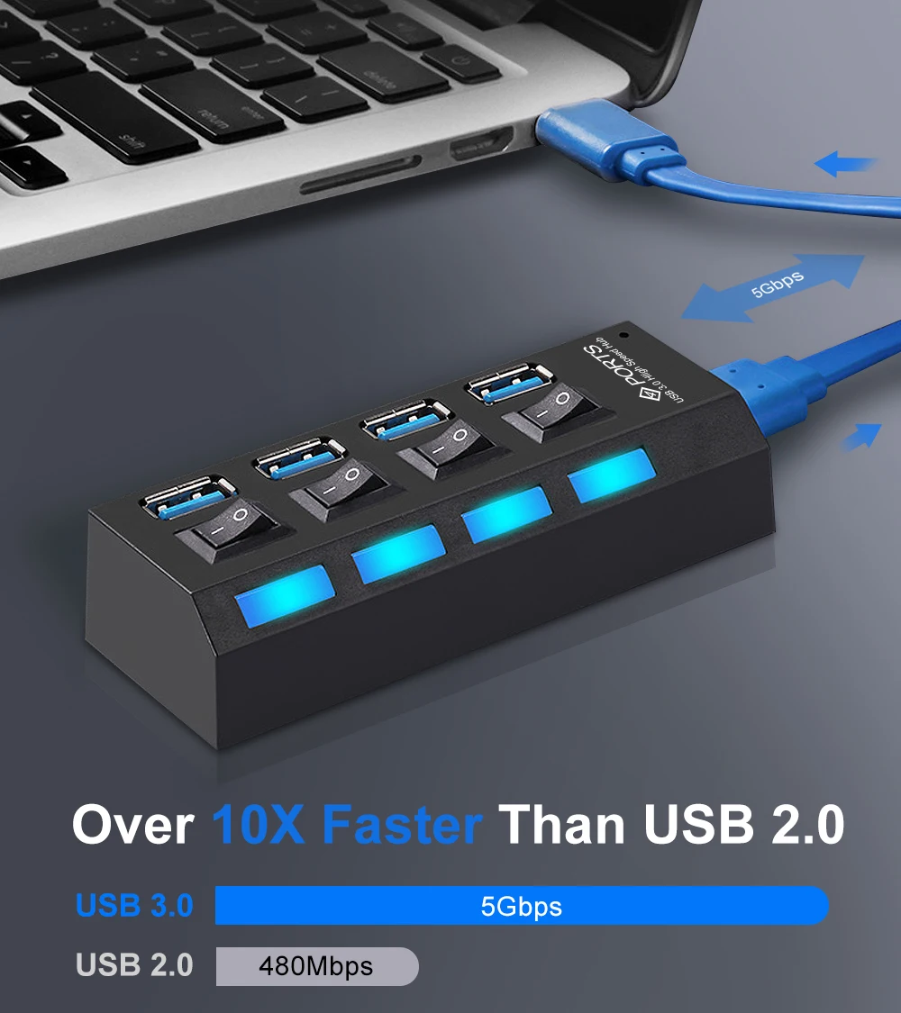 USB 3,0 концентратор 5 Гбитс, высокая Скорость Мульти USB разветвитель 3 место обитания Применение Мощность адаптер 47 Порты и разъёмы несколько расширитель USB концентратор с переключателем для портативных ПК