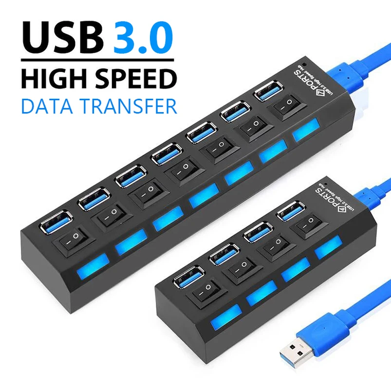 1. 100% новый и высокое качество 2. Устройство USB Hot plug & play 3. Полностью совместим с USB спецификации версии 3,0 4. Синий светодиодный источник питания 5. Включение/выключение выключателей активировать или деактивировать отдельные порты 6. Предназначен с 4 портами, 7-портовый, эта компактная USB3.0 высокоскоростной концентратор достаточно мал для поездок, и кабеля достаточно, чтобы удовлетворить ваши потребности в подключении