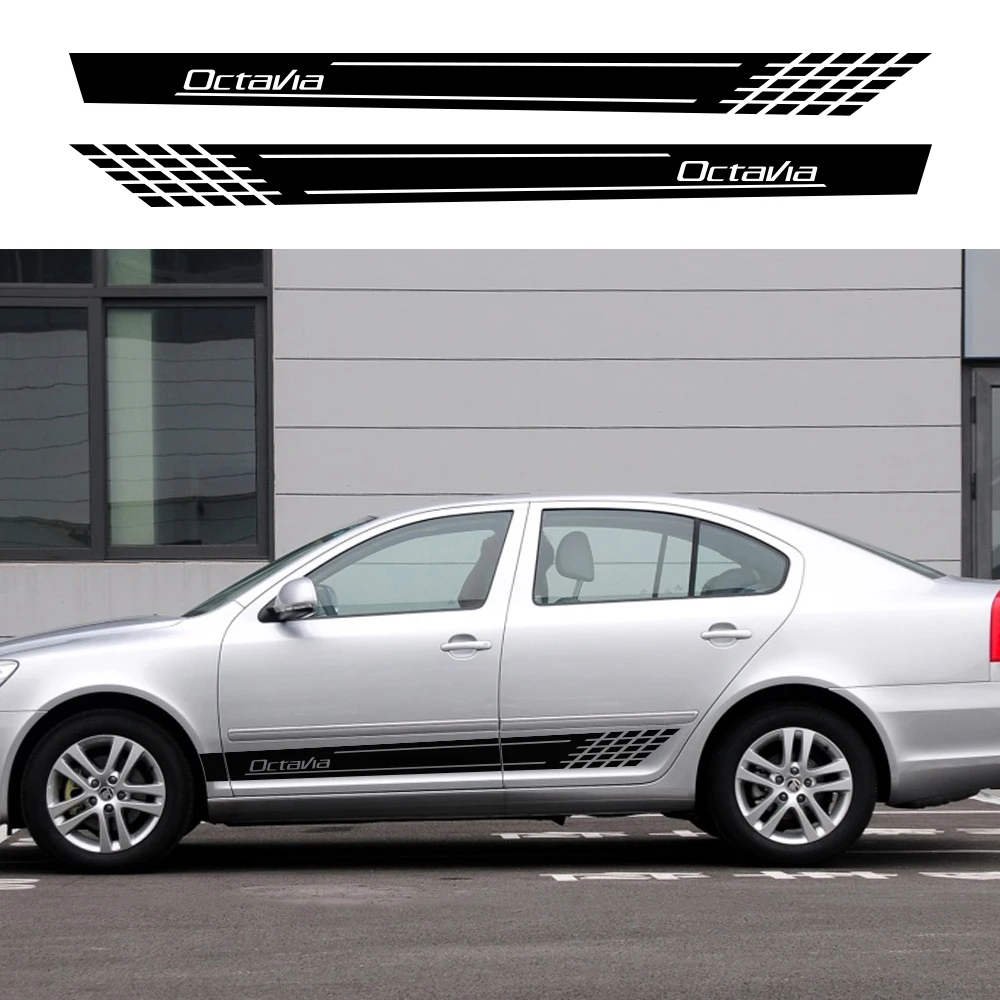 2 шт., для Skoda Octavia 2 3 A5 A7 MK2 MK3, наклейки для автомобильной двери, длинная юбка, авто декоративная виниловая пленка, наклейки, автомобильные аксессуары DIY