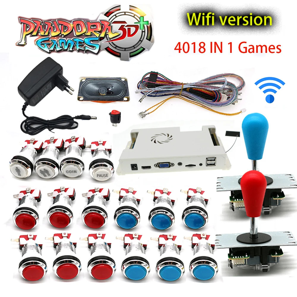 Аркадный Комплект сделай сам с 3d коробкой 4018 8000 в 1, плата Wi-Fi, светодиодная кнопка, копия Sanwa, джойстик, адаптер питания европейского стандарта, кабель, динамик
