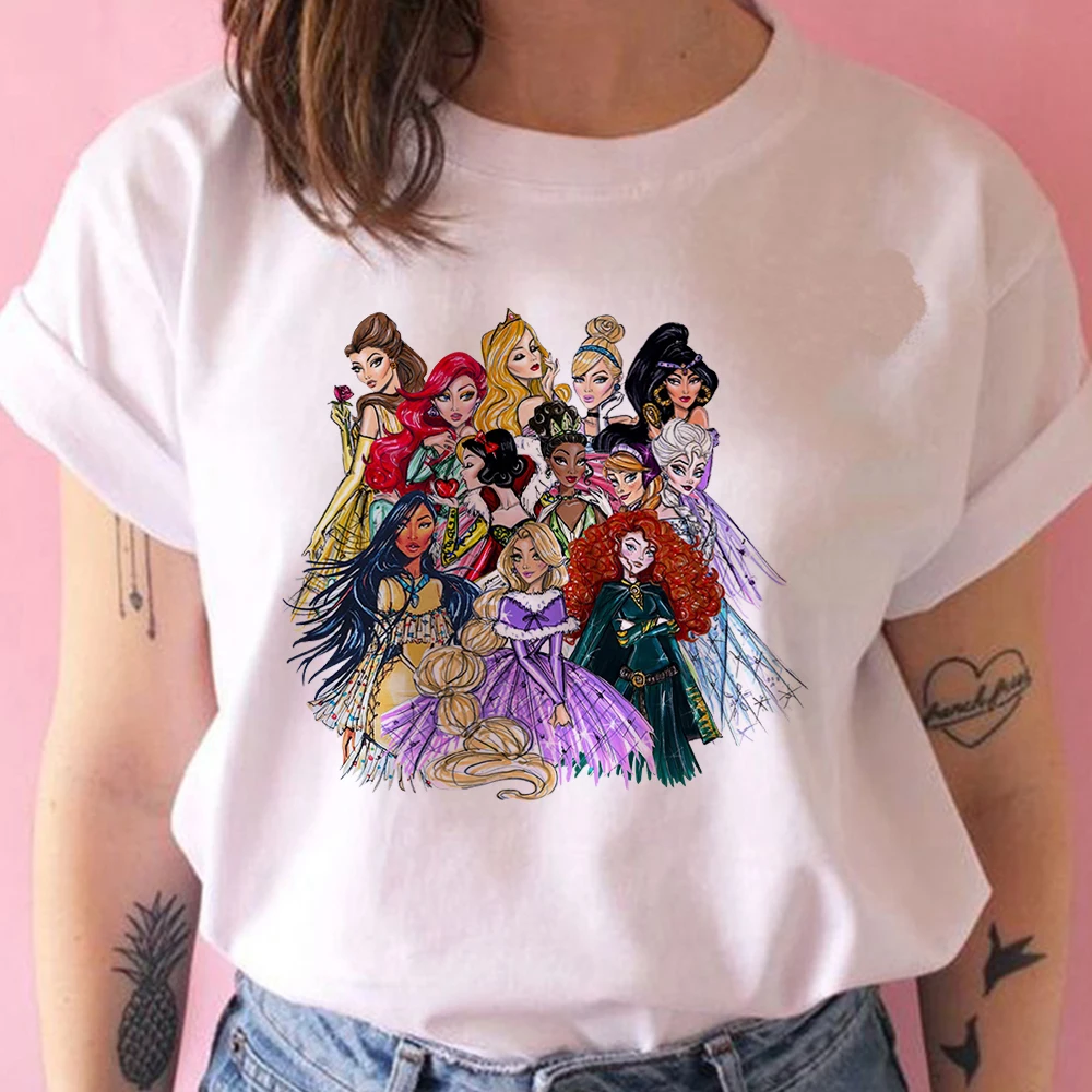 Футболка женская в стиле Харадзюку, модная Милая рубашка с принцесс...