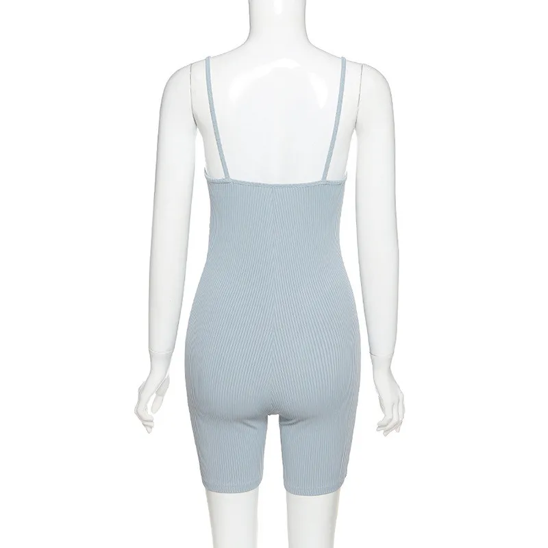 Женский летний трикотажный комбинезон на бретелях-спагетти