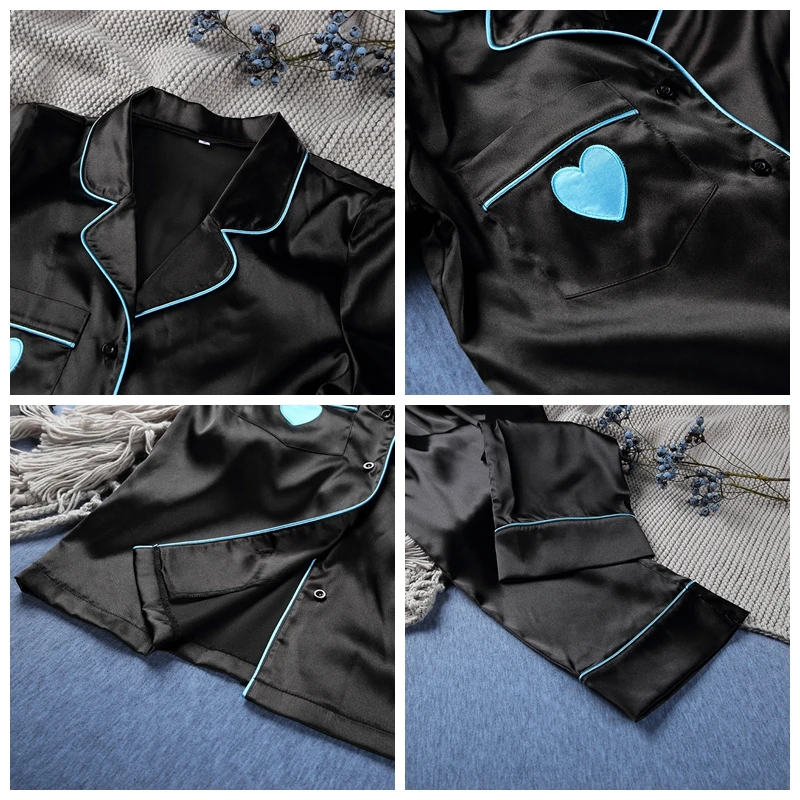 Пижамный комплект JULY'S SONG женский из 2 предметов, атласный Шелковый черный пижамный комплект с длинным рукавом, с вышивкой, пикантная одежда для сна, весна-осень