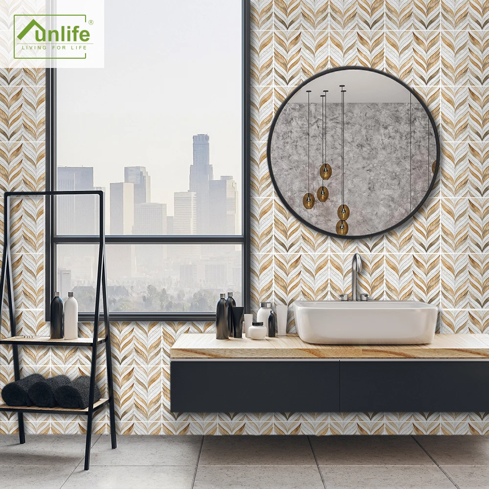 FunlifeМедная металлическая мраморная плитка с растениями, легко моющиеся кухонные обои, съемные обои для ванной комнаты