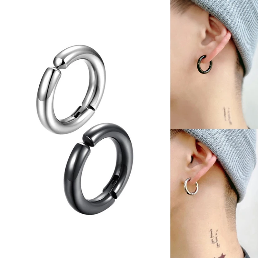 Серьги без ушных отверстий женские и мужские серьги-кольца в стиле панк черные Клипсы из нержавеющей стали женские и мужские ювелирные изделия