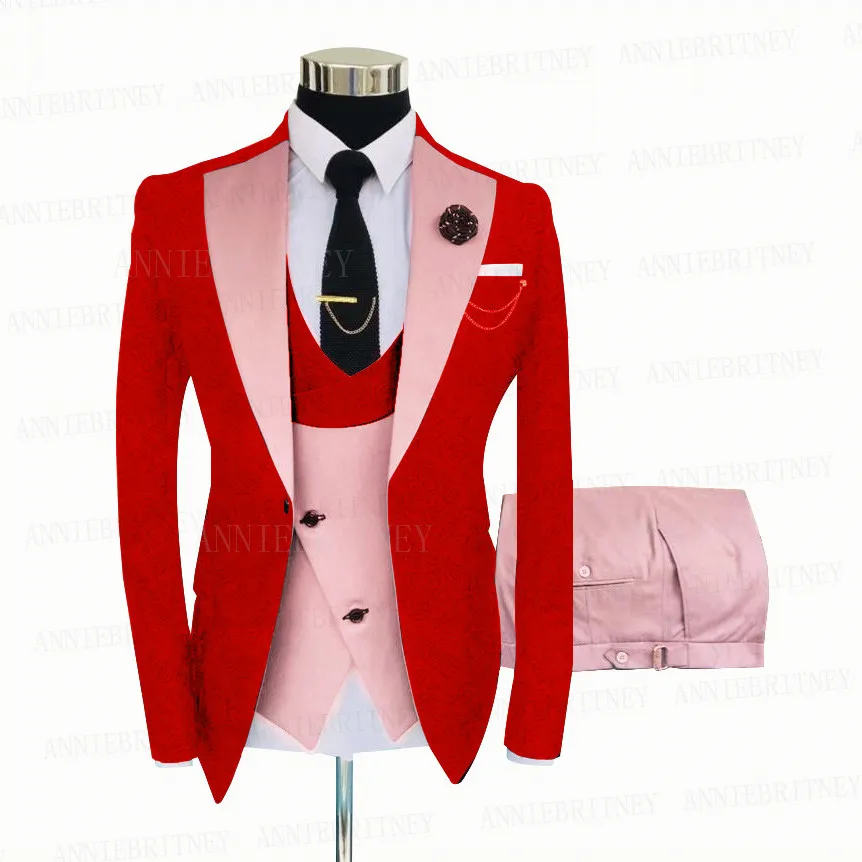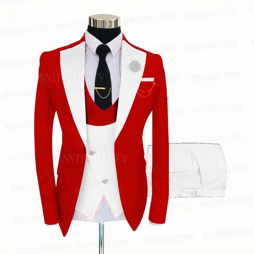 Жаккардовый костюм для мужчин из 3 предметов, приталенный пиджак, двубортный жилет, брюки, для выпускного вечера, свадебный смокинг, под заказ