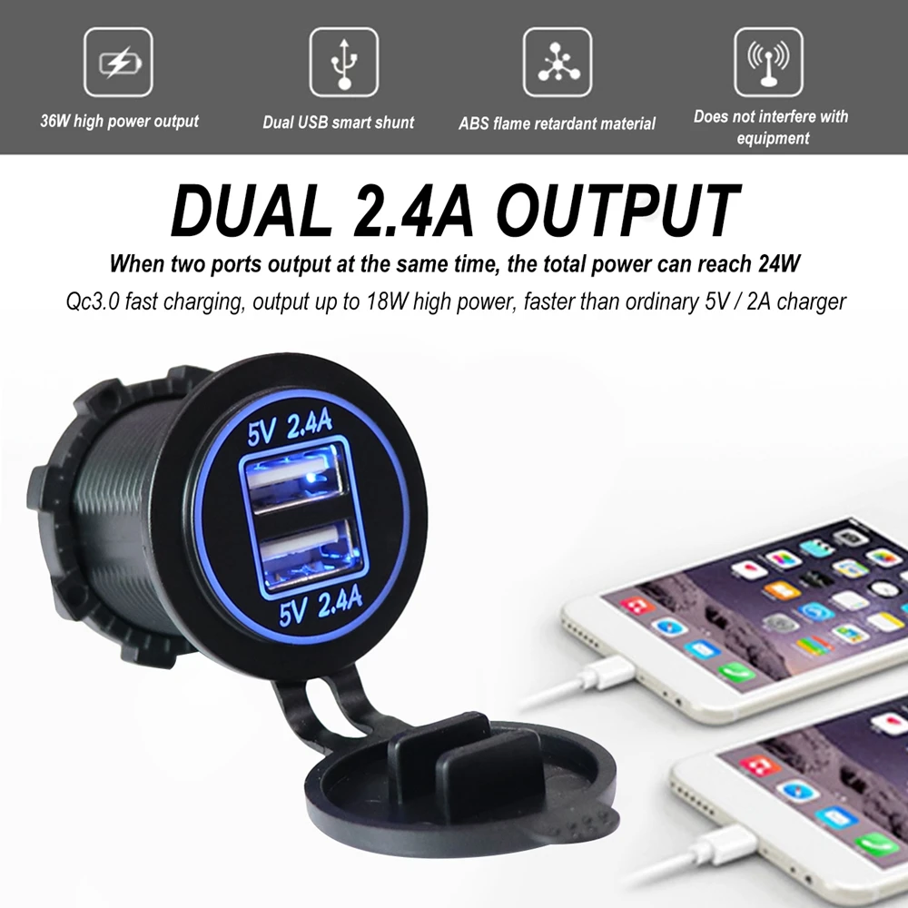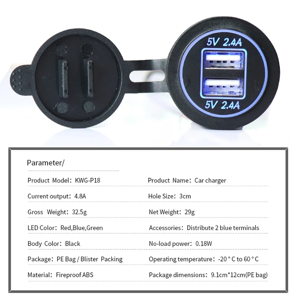 4.8A устройство для автомобиля с двумя портами USB сигареты Зарядное устройство гнездо Водонепроницаемый Мощность выход 12V24V светодиодный цифровой Дисплей для автомобиля Лодка ATV мотоцикла