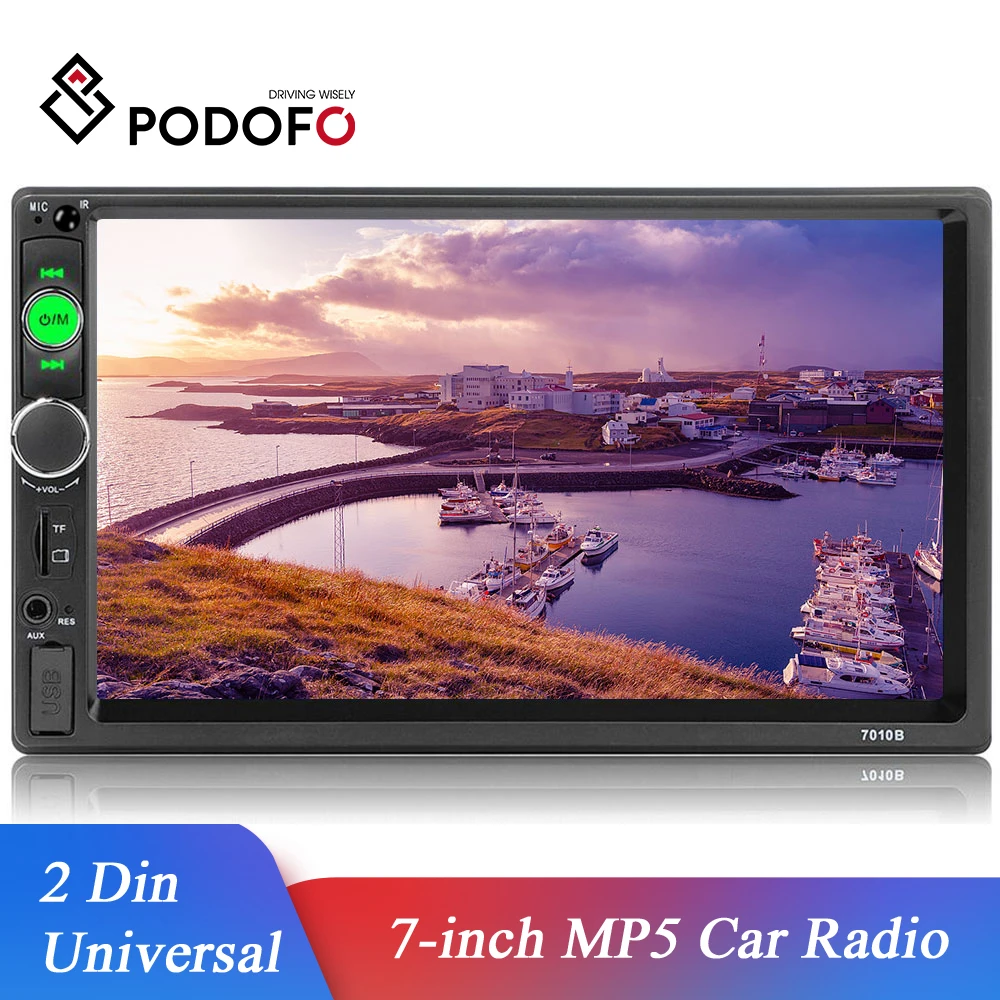 Автомобильный мультимедийный плеер Podofo 7010B, стерео-система с поддержкой камеры заднего вида, FM, USB, AUX, Bluetooth, типоразмер 2DIN