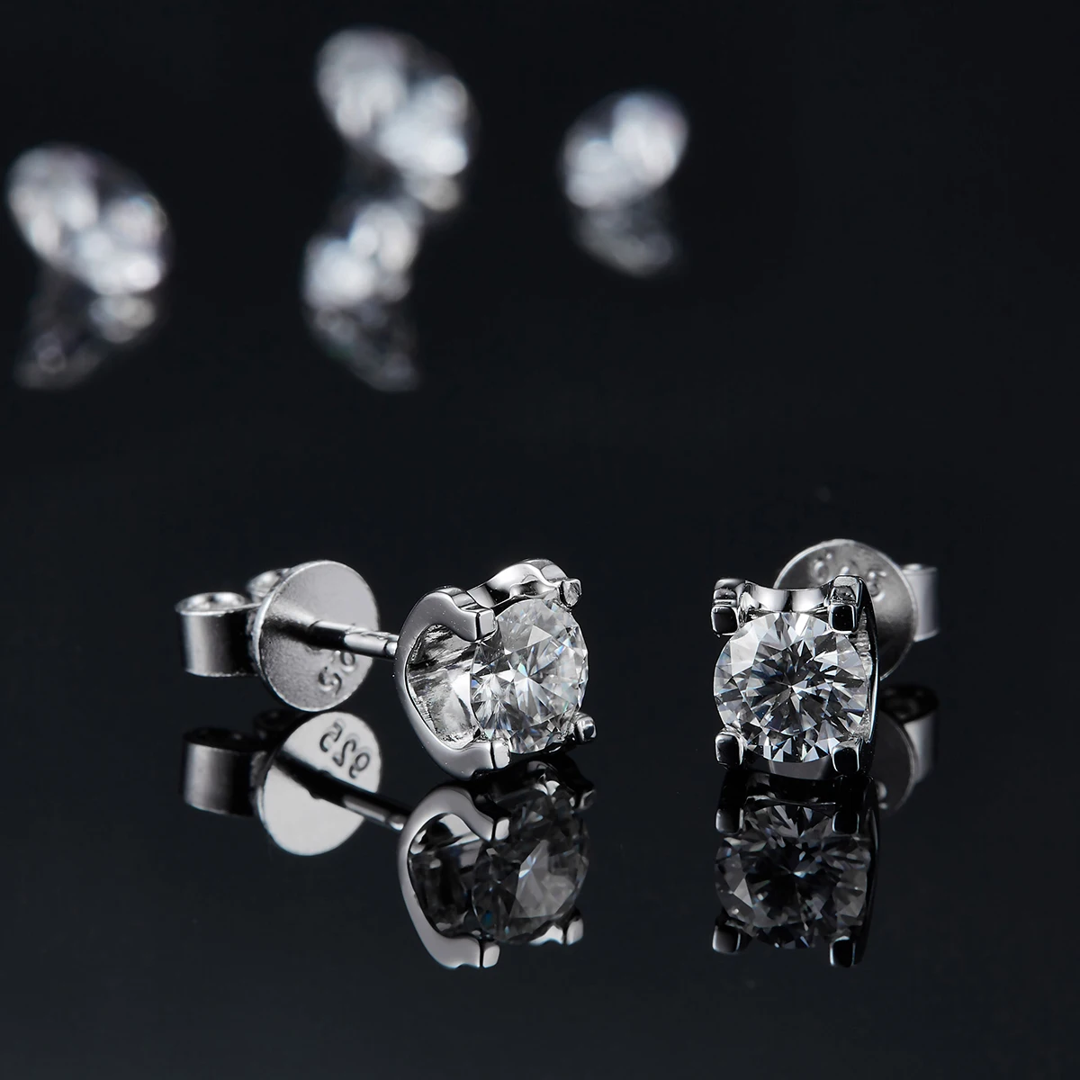 Серьги женские из белого золота с мусанитом, 6 Зубцов, 5 мм, 6 мм