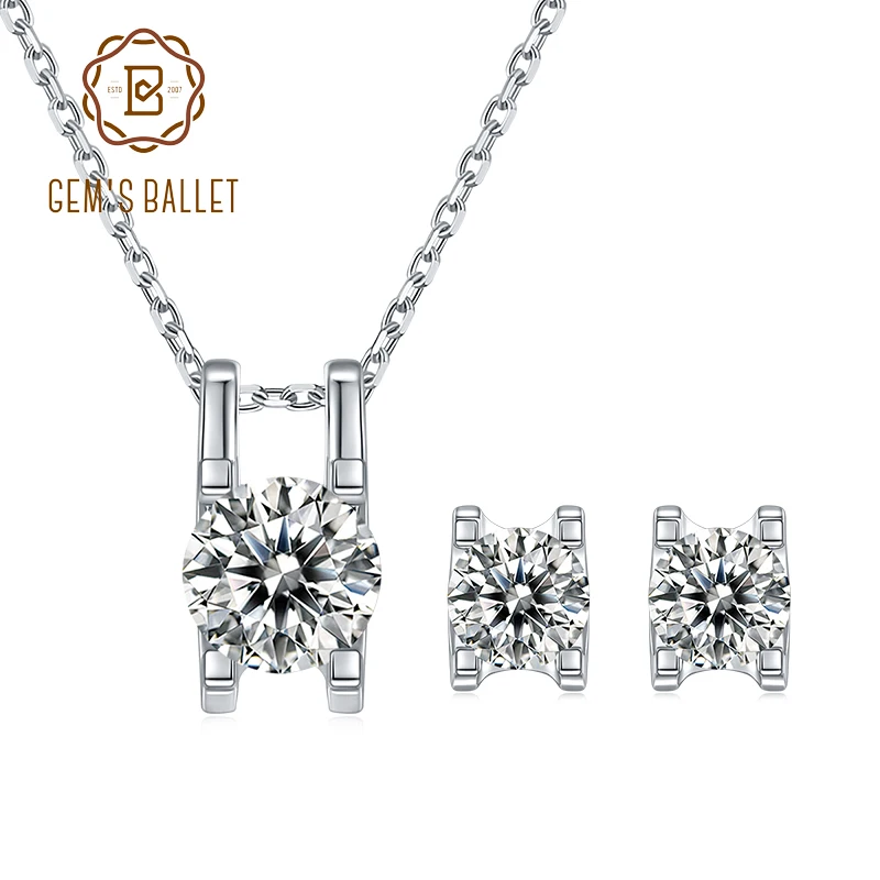 Комплект сережек для женщин GEM'S BALLET Moissanite, ожерелье с под...