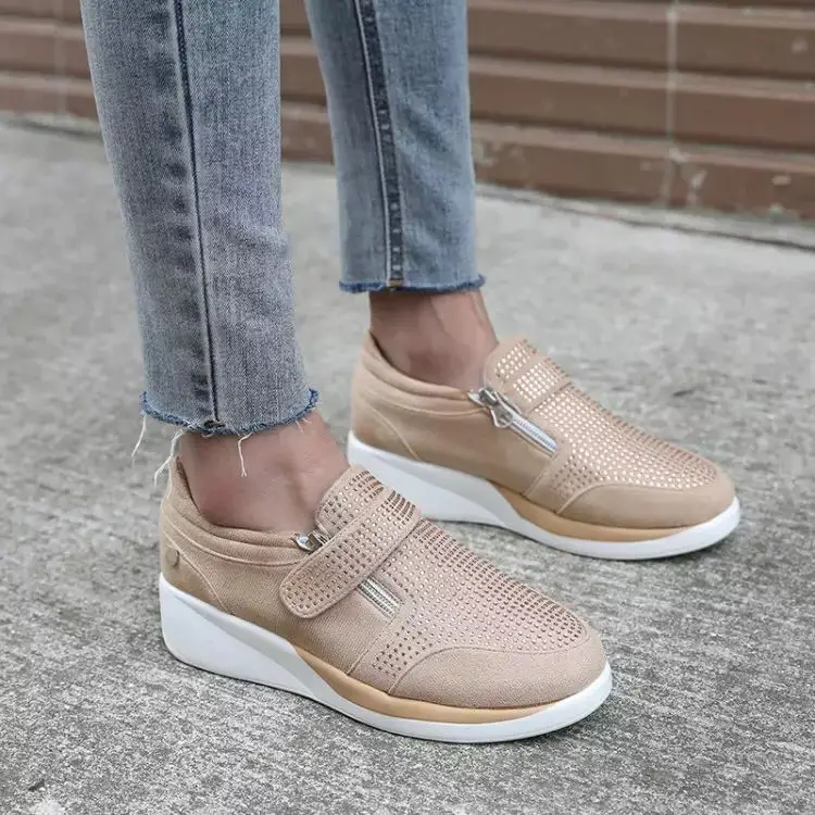 Женские кроссовки на молнии, Вулканизированная подошва, Повседневна...