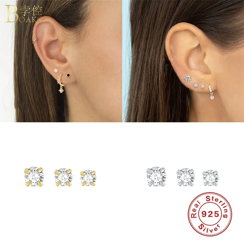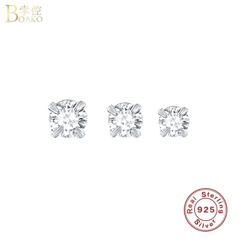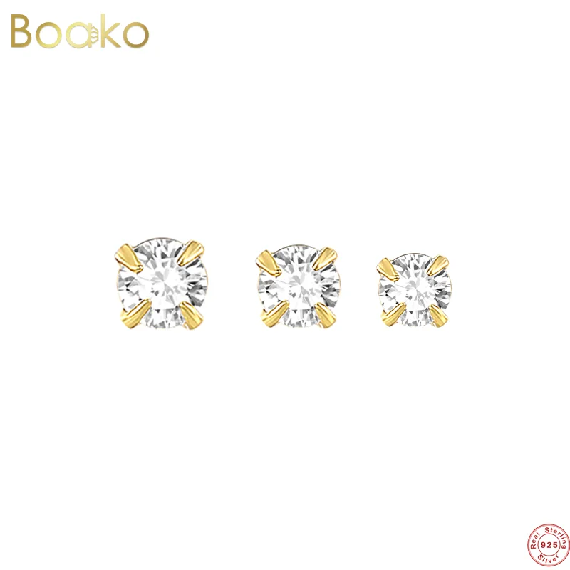 Boako 100% S925 стерлингового серебра 2,5/3/3.5 мм циркониевые серьги-гвоздики в форме мини Малый алмаз серьги для женщин ювелирные изделия pendientes плата