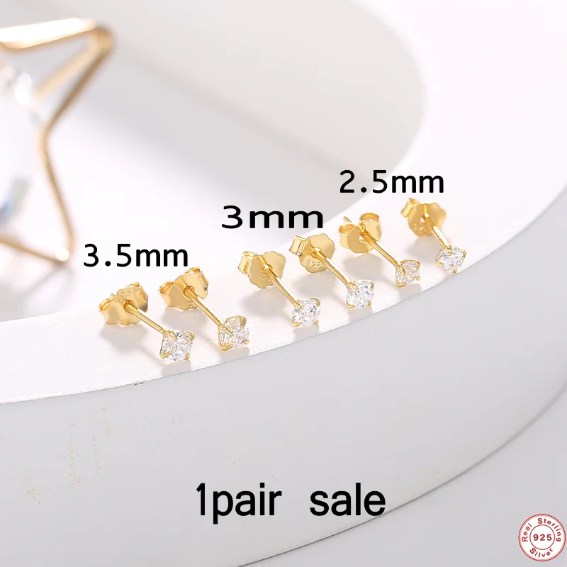 Автоклав 100% S925 стерлингового серебра 2,533.5 мм циркониевые серьги-гвоздики в форме мини Малый алмаз серьги для женщин ювелирные изделия pendientes плата