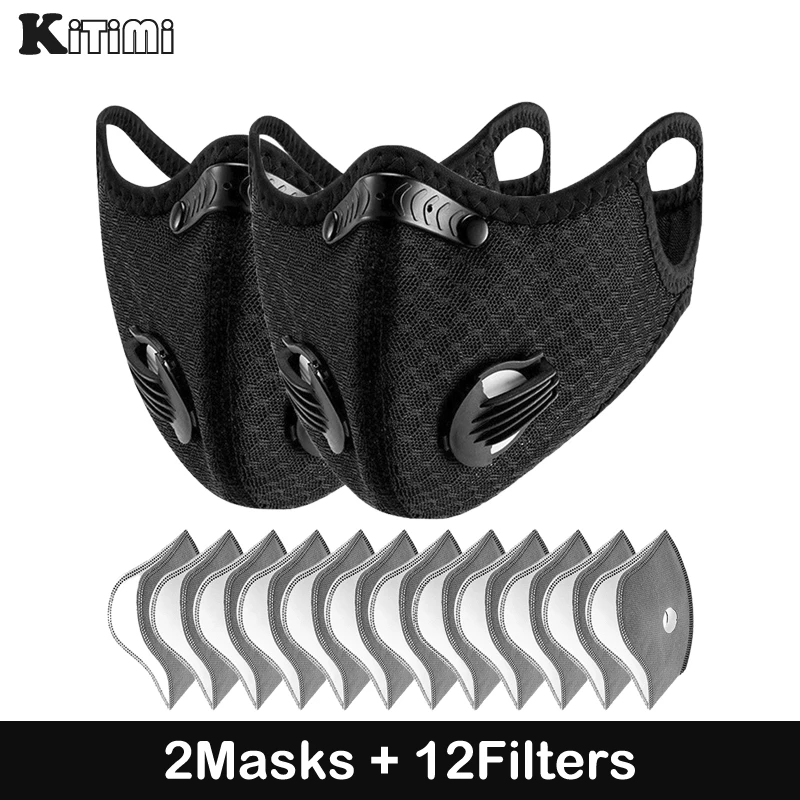 Маска с 4 сменными вставками, 2 выхлопных клапана, дышащая многоразовая маска на половину лица, маска для лица, для езды на велосипеде, для работы на открытом воздухе