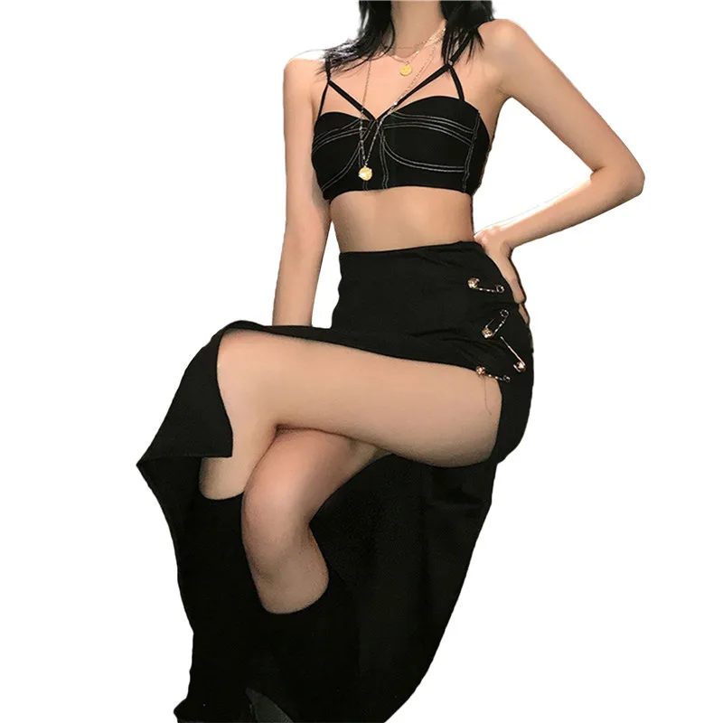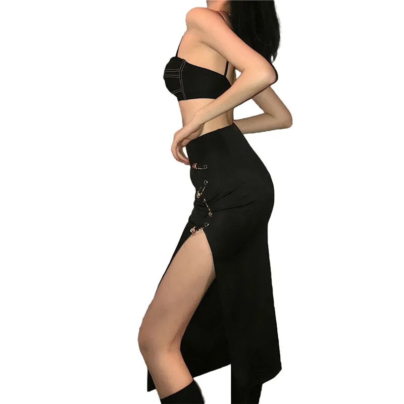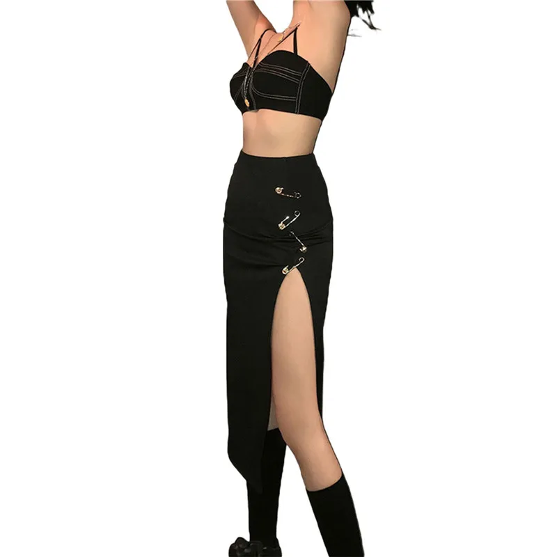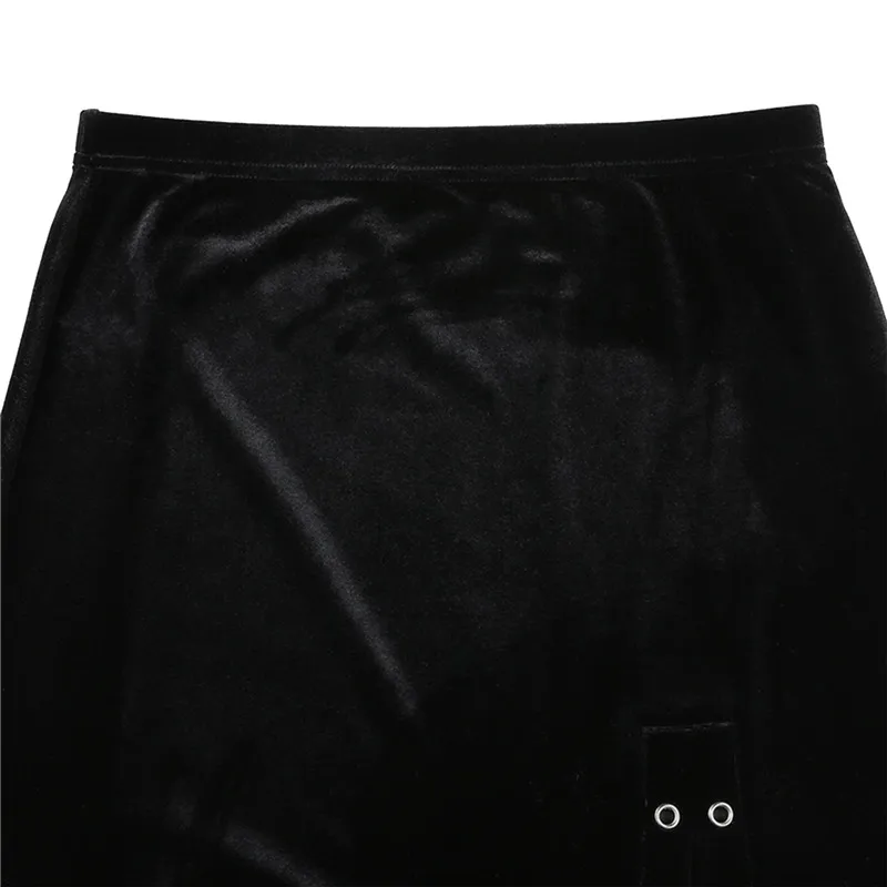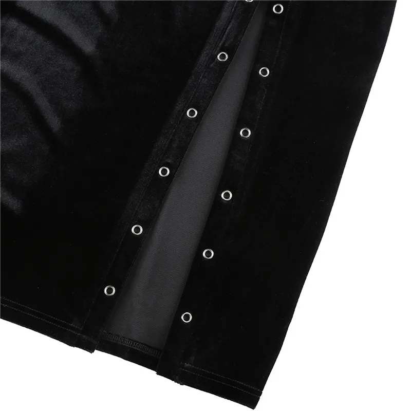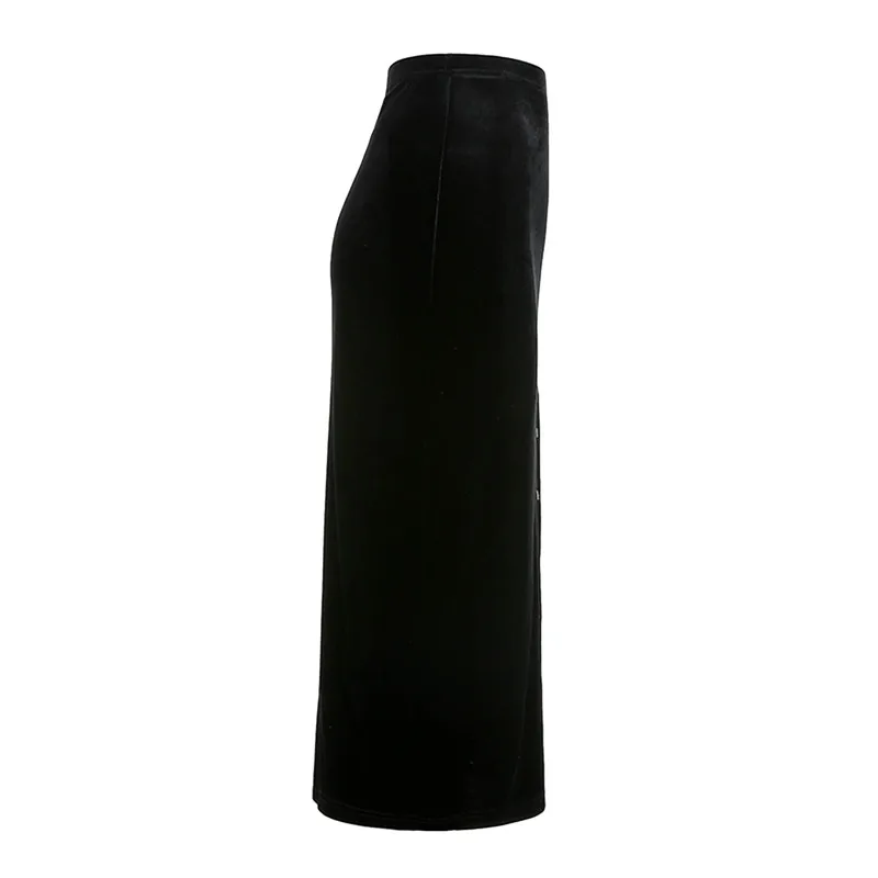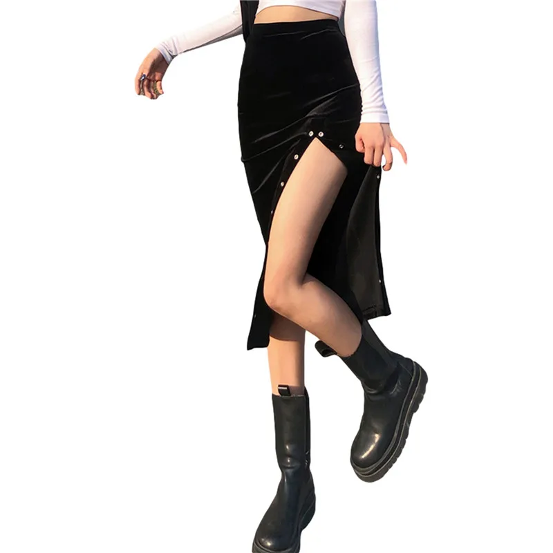 Юбка женская бархатная средней длины, модная Однотонная юбка-трапеция с завышенной талией, с металлическими кольцами и разрезом, эластичная, на осень-зиму