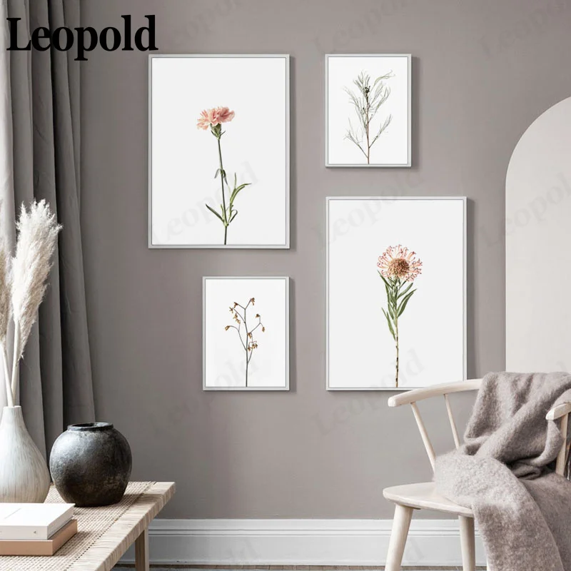 Скандинавский минималистичный постер на холсте с растениями, легкий цвет, картина с одним цветком, печать, украшение для дома, картина без рамки