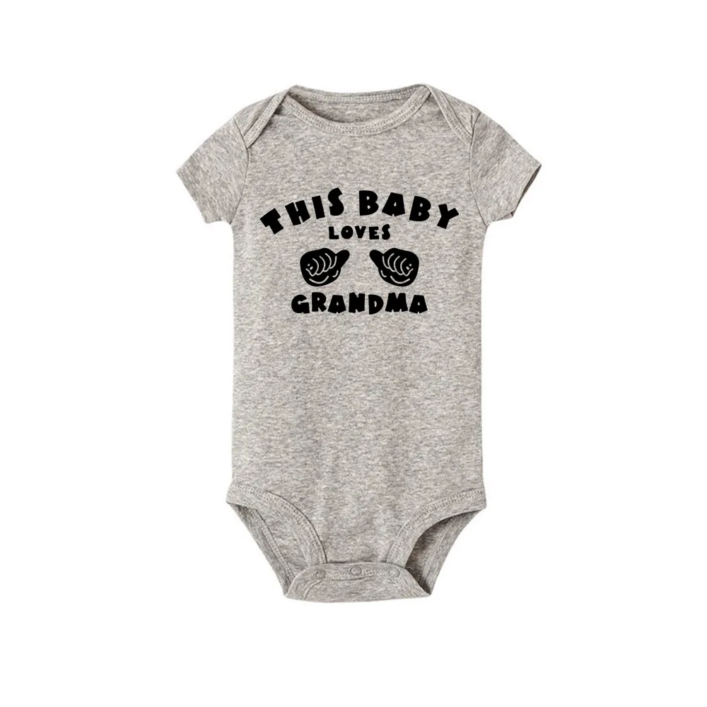 Боди с короткими рукавами и надписью «THIS BABY LOVES GRANDMA» для новорожденных мальчиков и девочек; Повседневный комбинезон; Детская летняя одежда
