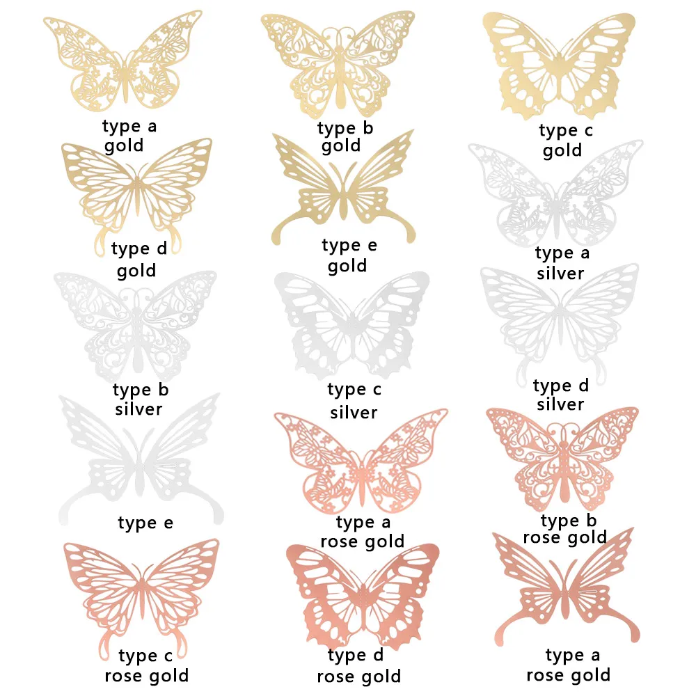 12 шт./упак. Сделай Сам наклейки на стену с бабочка 3D полые Переводные картинки с бабочками цвета: золотистый, серебристый металл цвета розового золота текстура ремесла домашнего декора