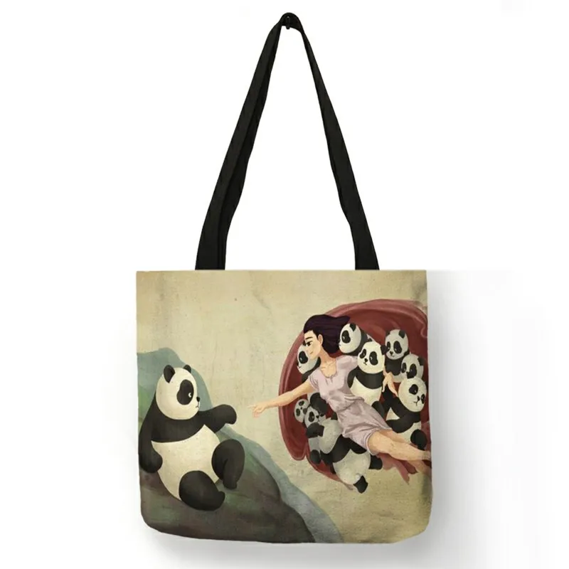 Милая забавная Сумка-тоут из картина панда эко-льняной ткани, много...