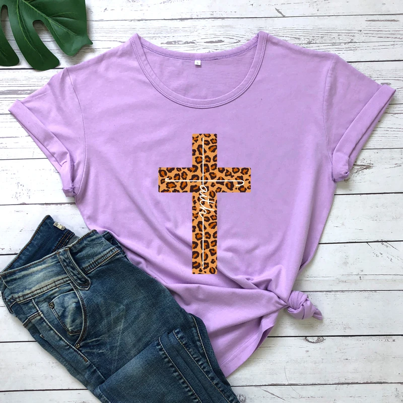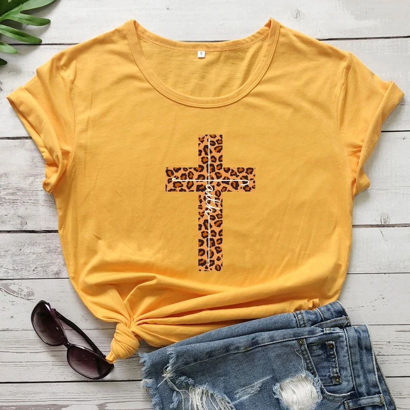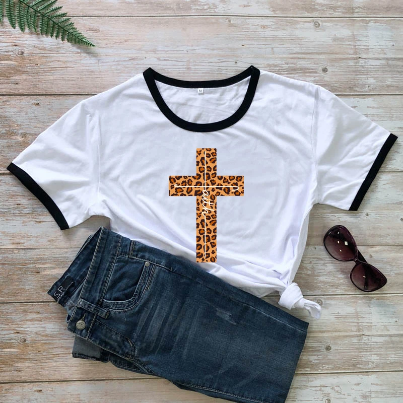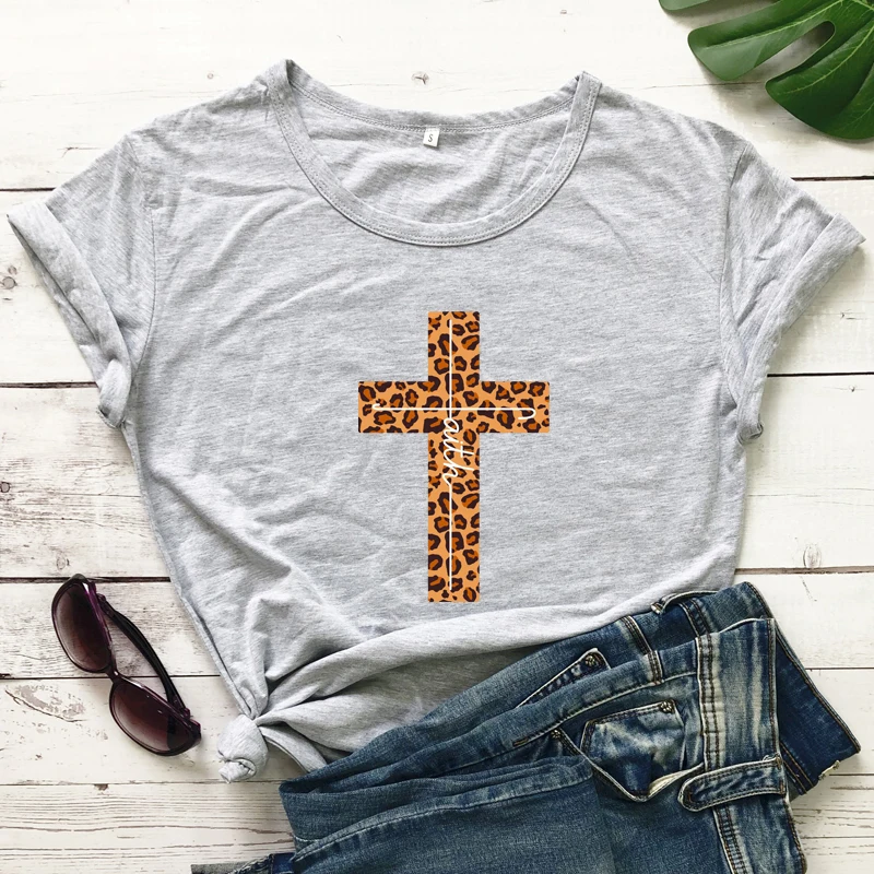 Футболка женская с леопардовым принтом, винтажная хипстерская рубашка с крестом веры и Иисуса из Библии, Топ в стиле католической Христианской Библии