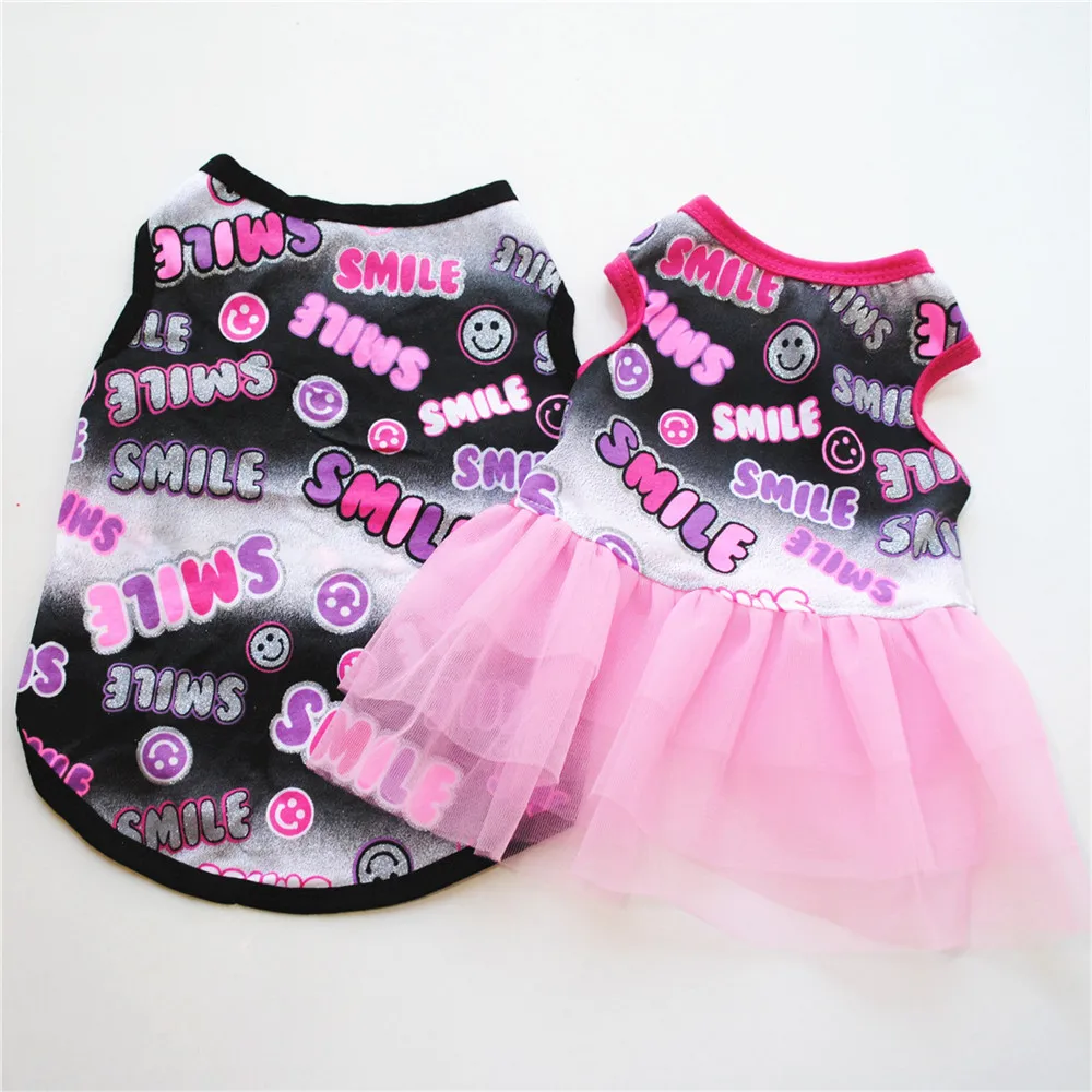 Летнее платье для собак с буквенным принтом Одежда для маленьких со...
