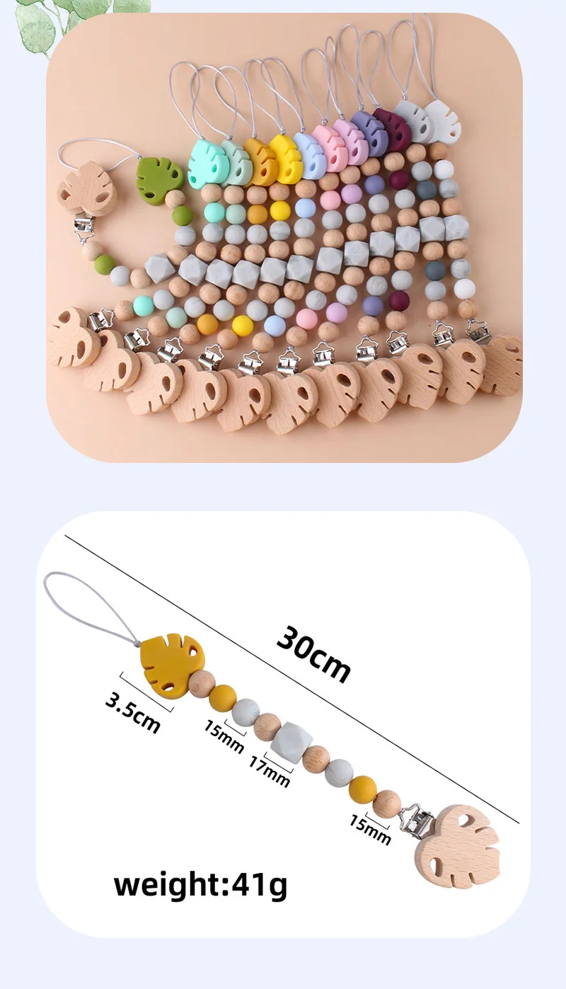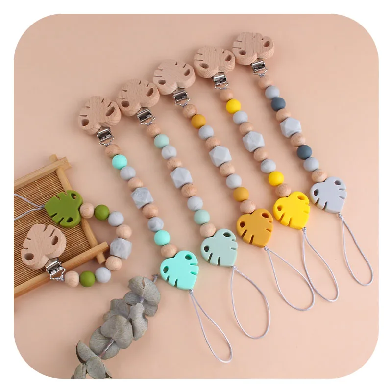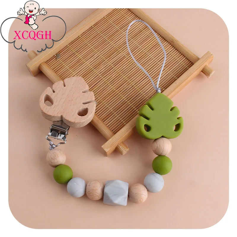 Соска-пустышка XCQGH для новорожденных, Буковые деревянные бусины, поводок для прорезывания зубов
