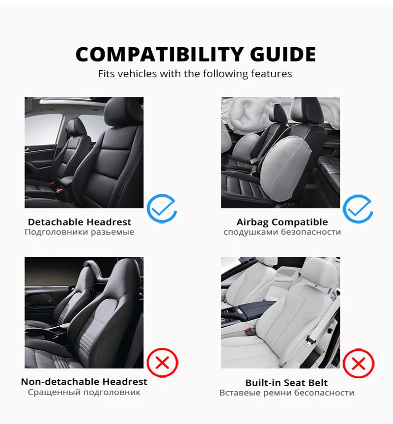 2 отдельных чехла на подголовник2 чехла на передние сиденья1 х аксессуары для крючков для сумок