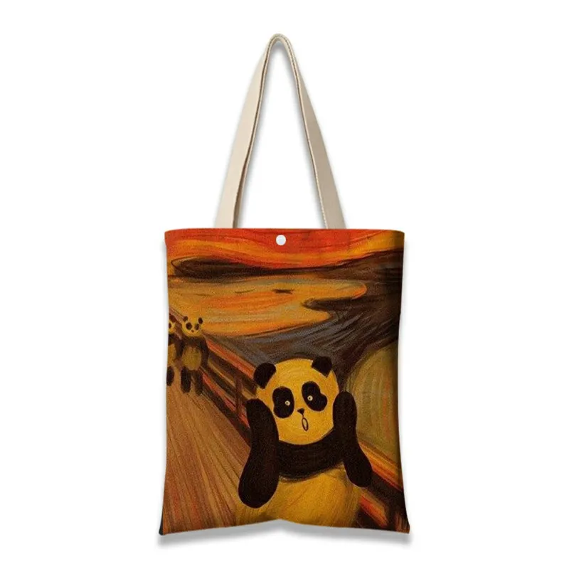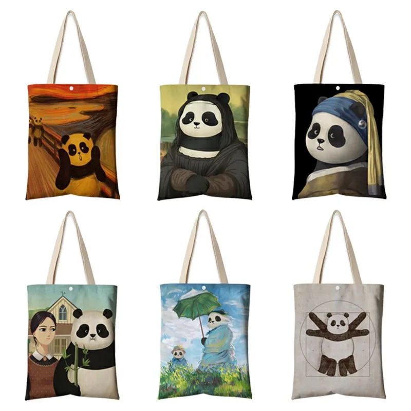 Новое поступление сумка-тоут знаменитая картина забавная панда дизайн большая сумка эко многоразовая Холщовая Сумка через плечо Складная Наименование товара: Сумка-тоут Материал: хлопок и лен Размер: 35 × 40 см/13,8 × 15,7 дюйма Структура: внутренний карман для телефона/ключа, застежка Упаковочный лист: 1 * сумка-тоут
