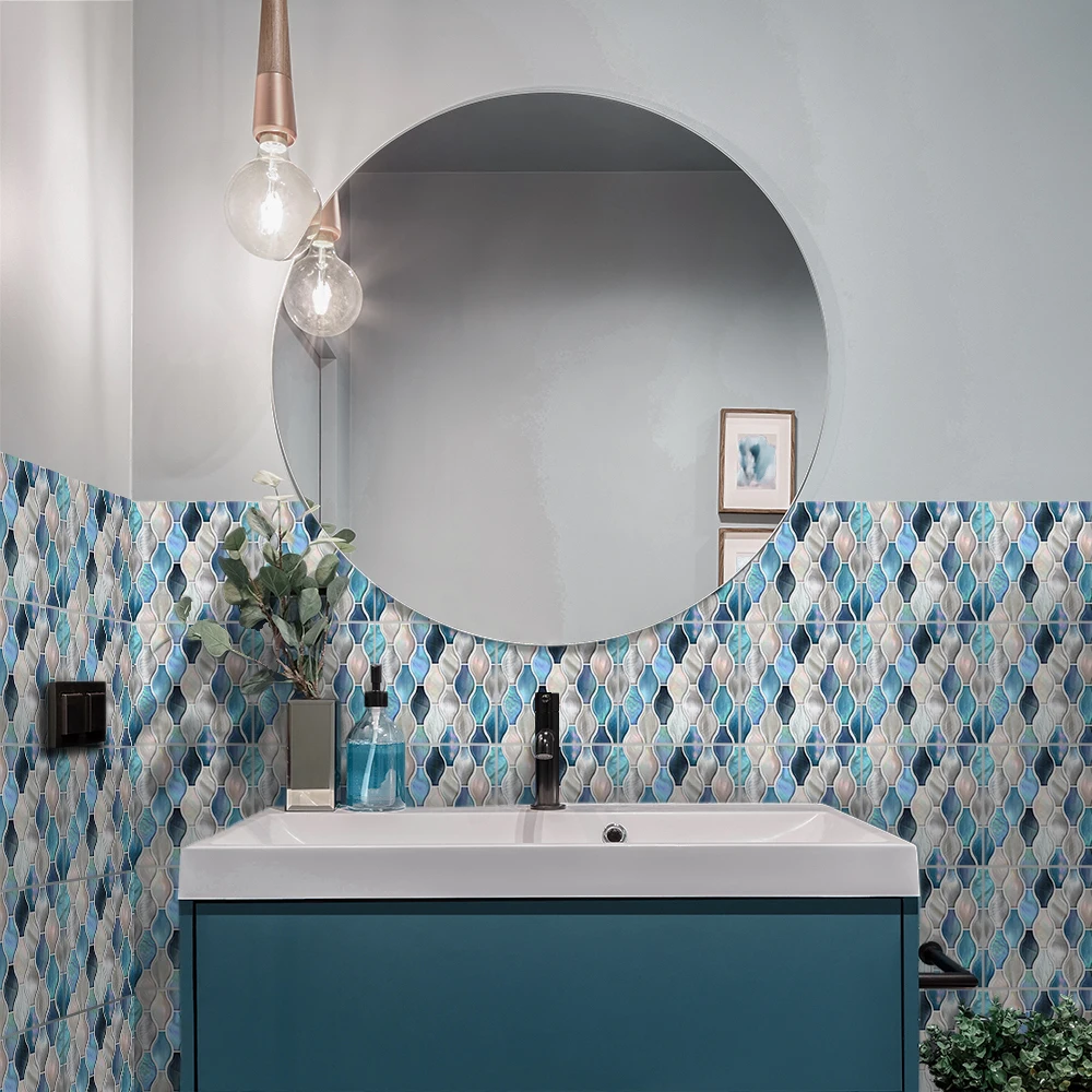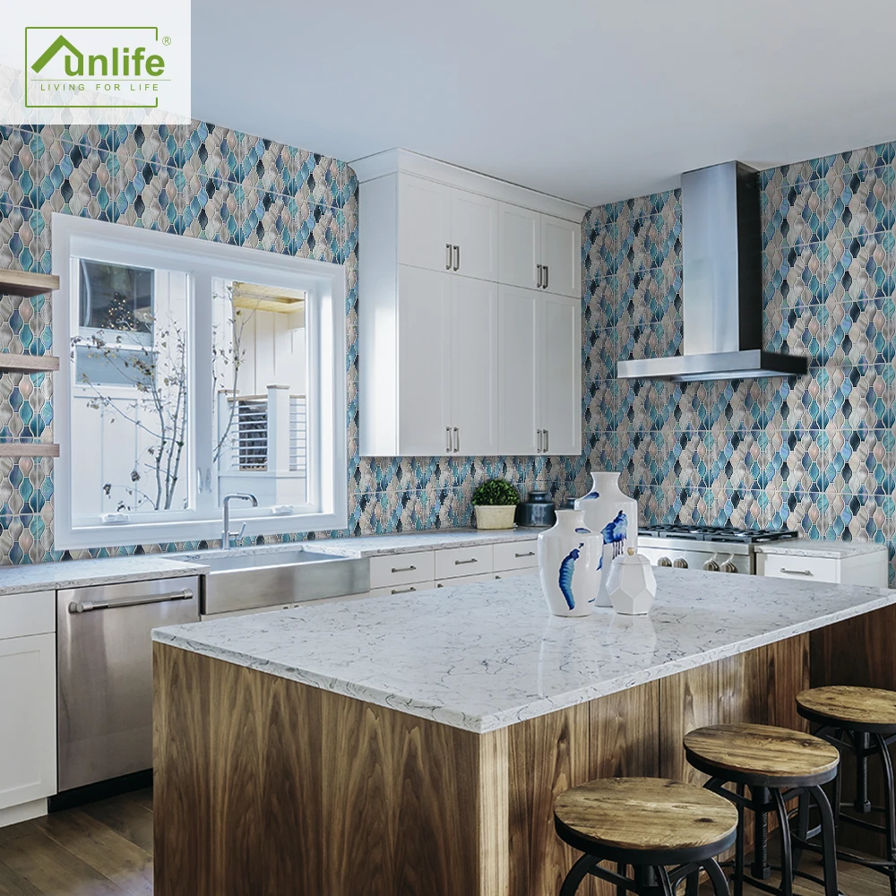FunlifeСиний и светильник розовый винограда мозаика плитка Стикеры высокой плотности изображения съемный Кухня щитка легко чистить обои этаж