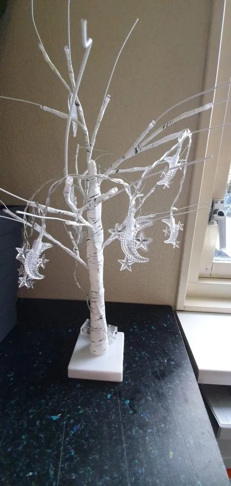 First of all, it looks absolutely gorgeous! Beautiful Ramadan decoration and the tree is possible to light up directly from electricity (cabel included) or with batterie. The light is beautifuly white. You can position the branches how you like. And the biggest surprise? Came to EU within 2 weeks. Bravo! I am really satisfied :-)