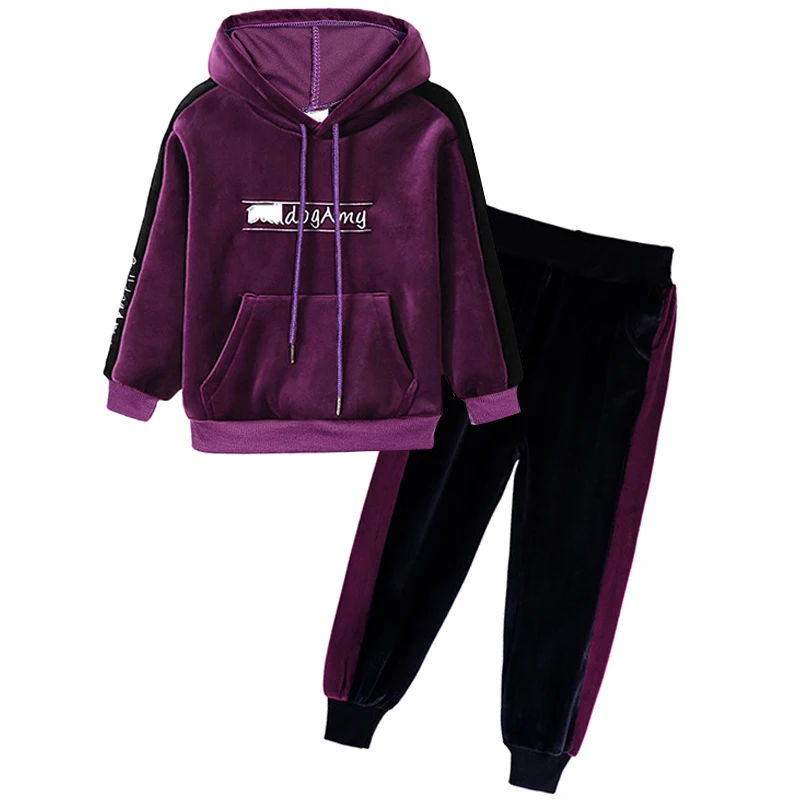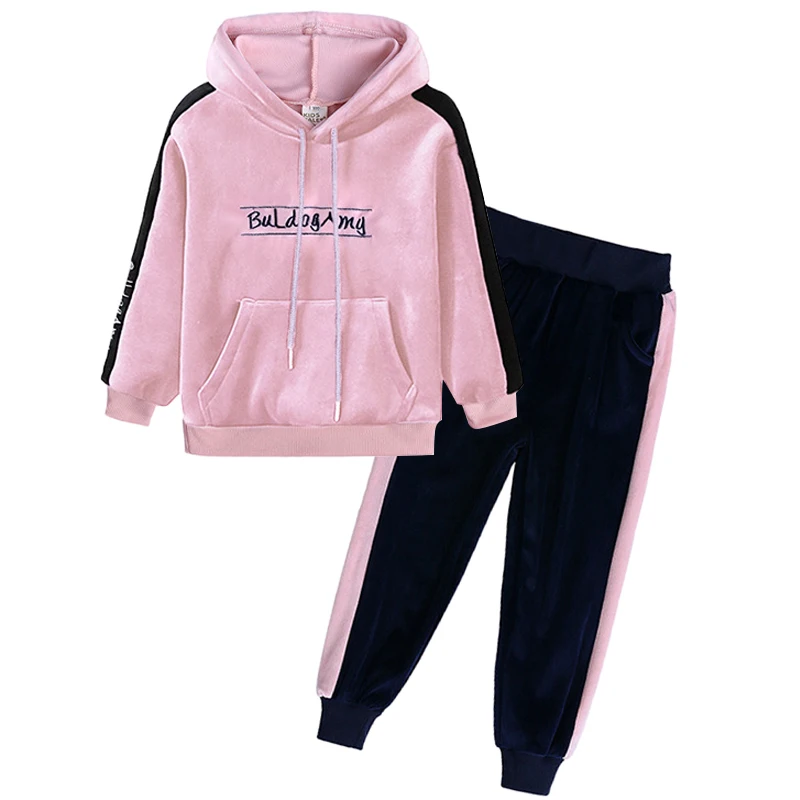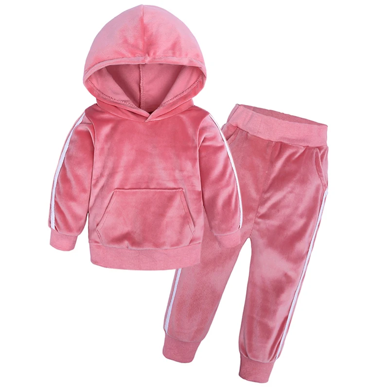 2 предмета, зимняя детская одежда для девочек, модный спортивный комплект с капюшоном, бархатная детская одежда для девочек, костюмы, От 1 до 8 лет