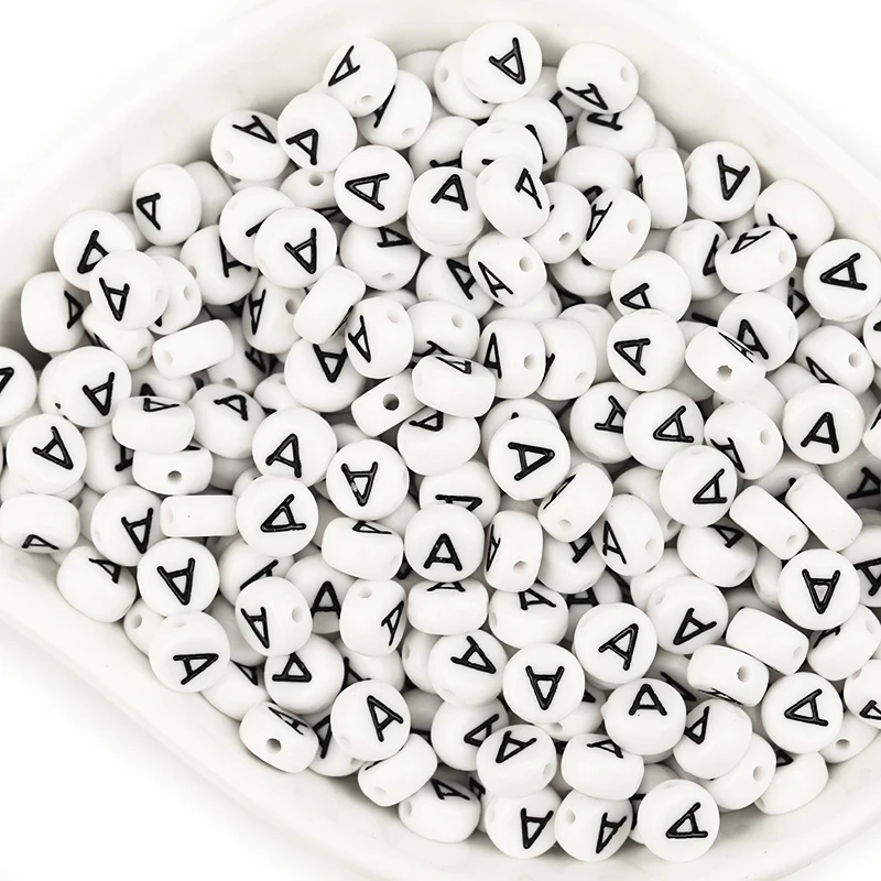 Бусины акриловые для браслетов и ожерелий, плоские круглые бусины с отверстием диаметром 7 мм, буквы 100 для изготовления ювелирных изделий сделай сам, A-Z шт.