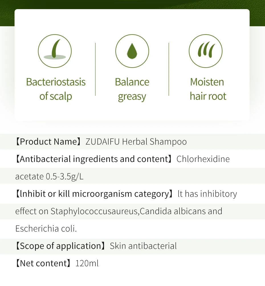 Травяной Антибактериальный шампунь для ухода за волосами Zudaifu пс...