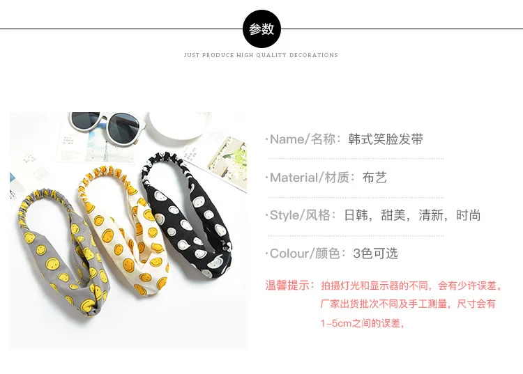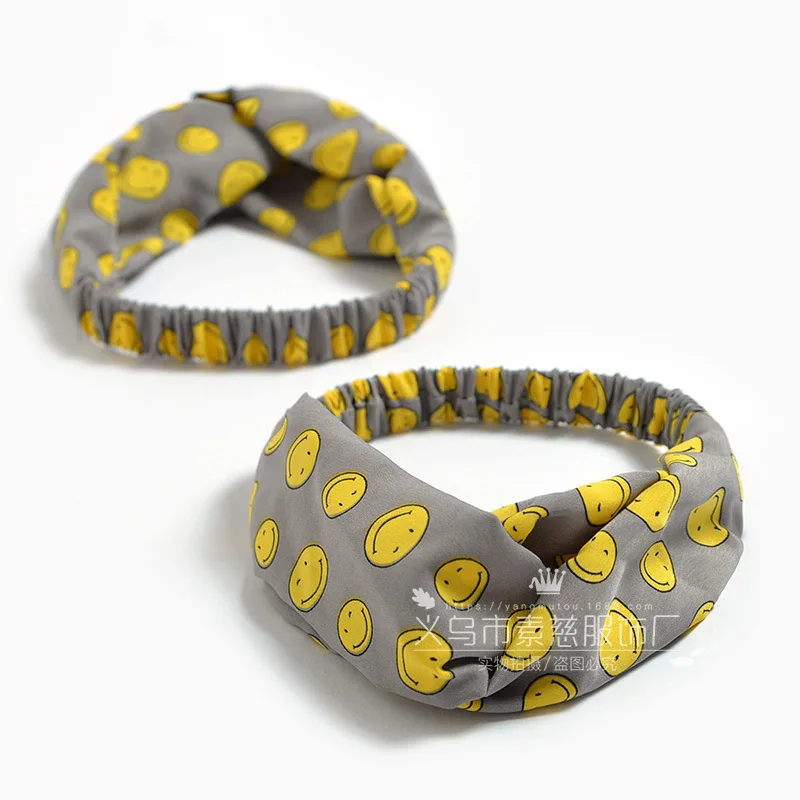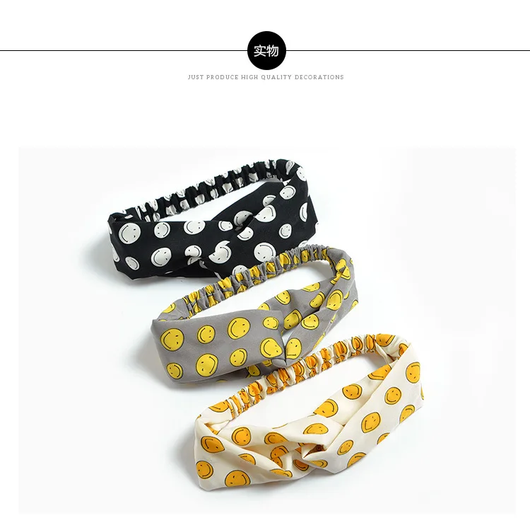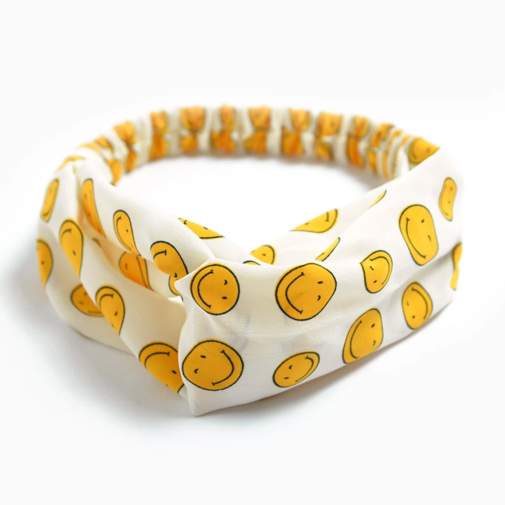 Женская резинка для волос с мультяшным принтом и смайликом для девочек, пучок для макияжа, головные повязки для волос, шифоновые аксессуары для волос FD087
