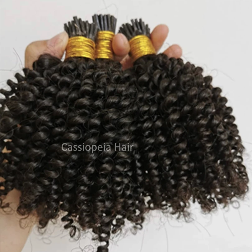 Короткие вьющиеся человеческие волосы кассии Funmi, наращивание волос с кончиком I, 1 глокон, 100 нитей, натуральный цвет, кератин Microlink I Tips, человеческие волосы